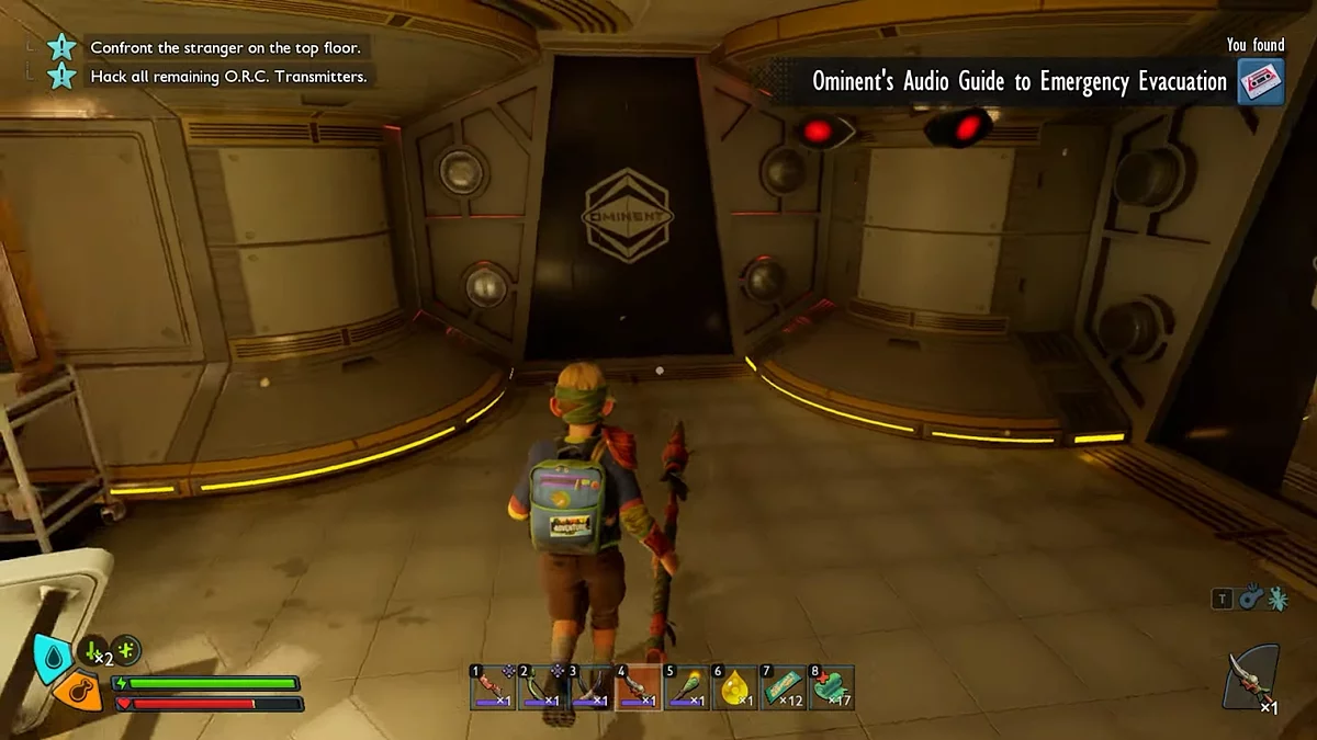 Натиснувши велику червону кнопку, пройдіть через центральні двері і знову скористайтеся ліфтом.