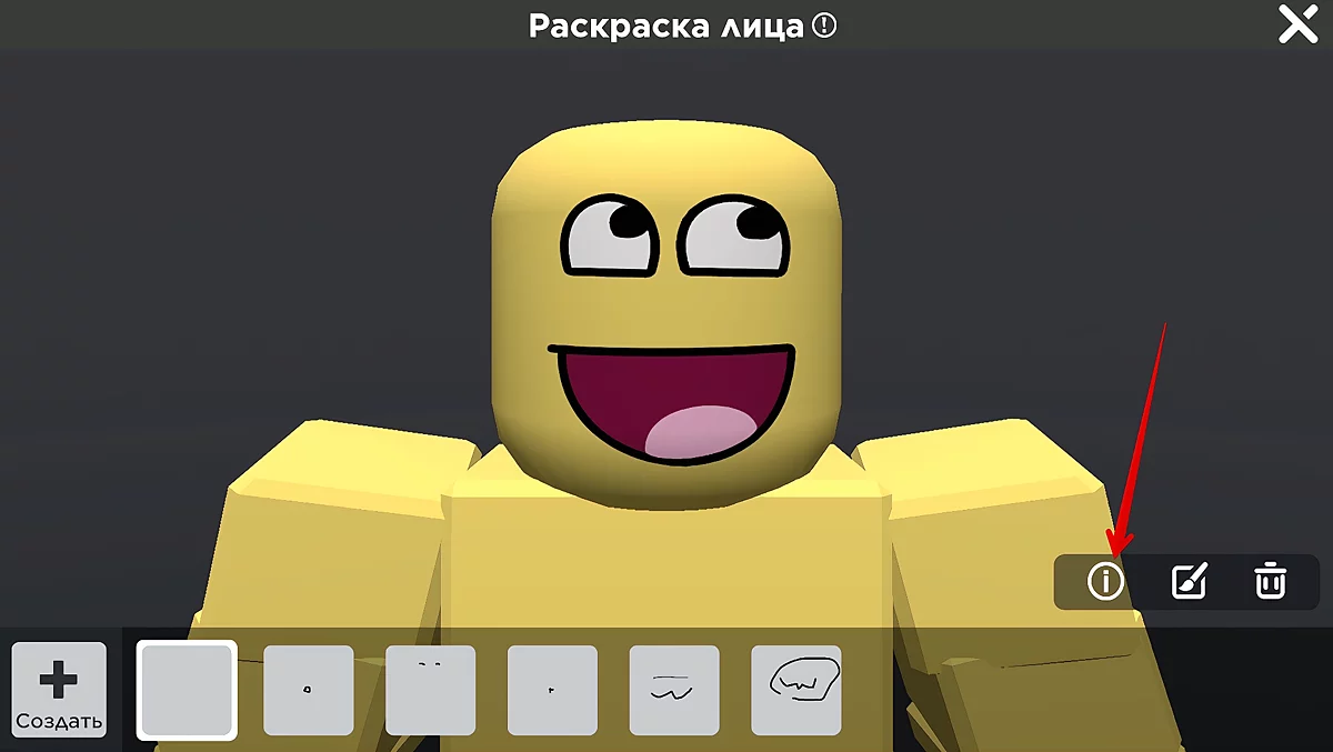 - Вийдіть назад у меню облич, виберіть обличчя і в нижньому правому куті натисніть на іконку «i» в кружечку.