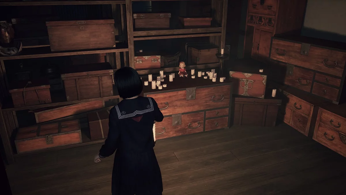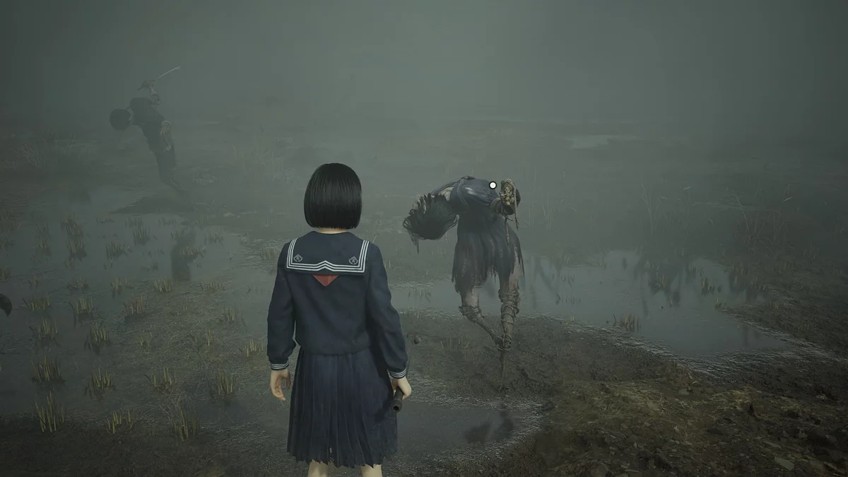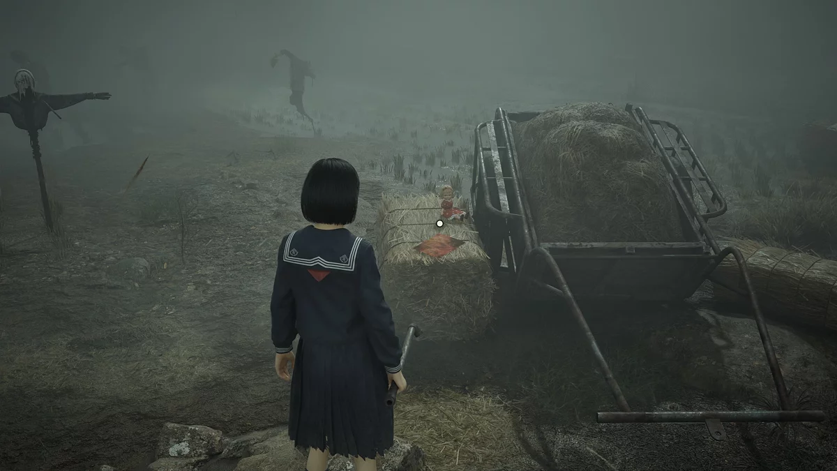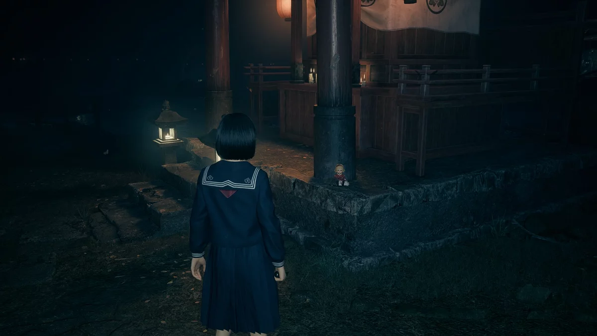 Слідуйте за Сю до вівтаря і збережіться. Рухайтеся до розвилки і йдіть наліво. Подивіться катсцену, в якій Хінако разом з другом згадують, як вони грали в дитинстві на рисових полях. Далі потрібно вирішити загадку з ляльками.