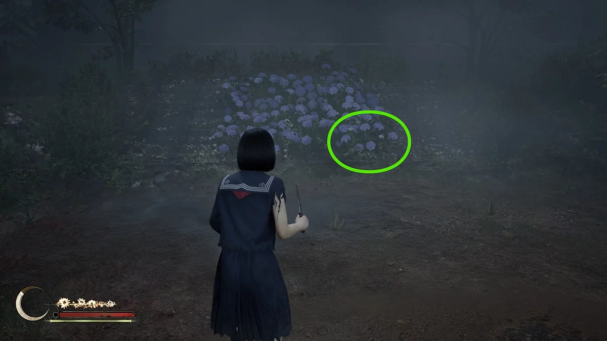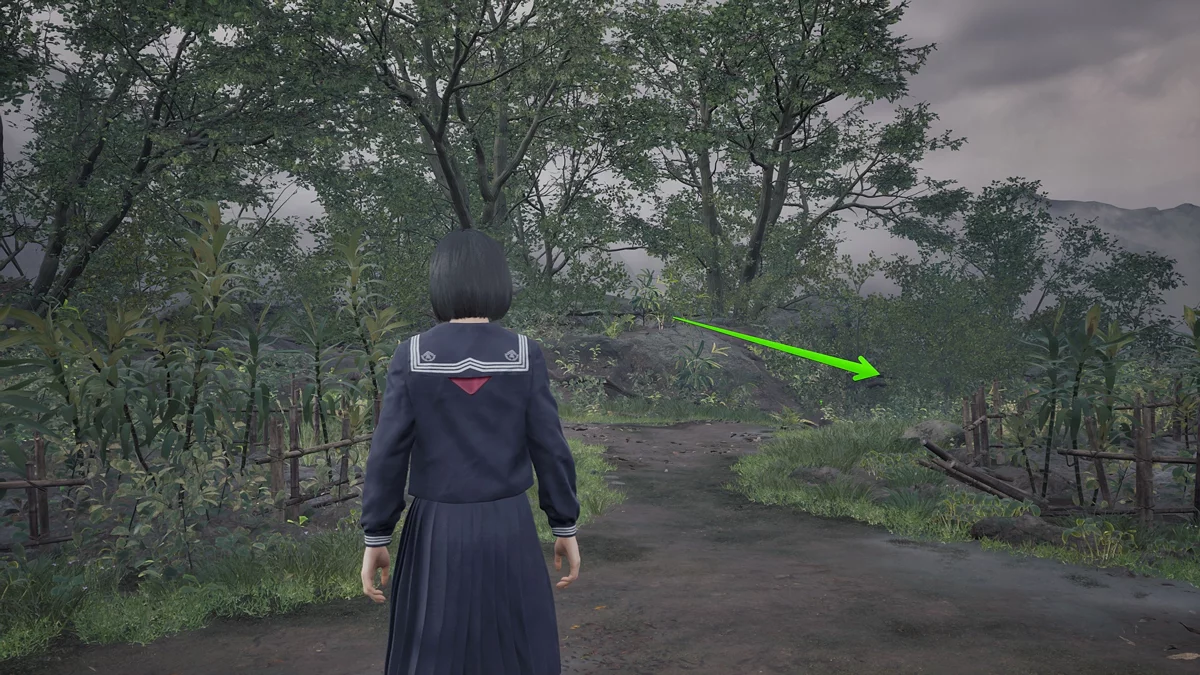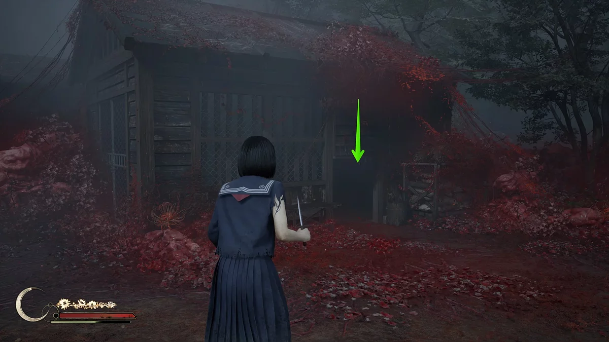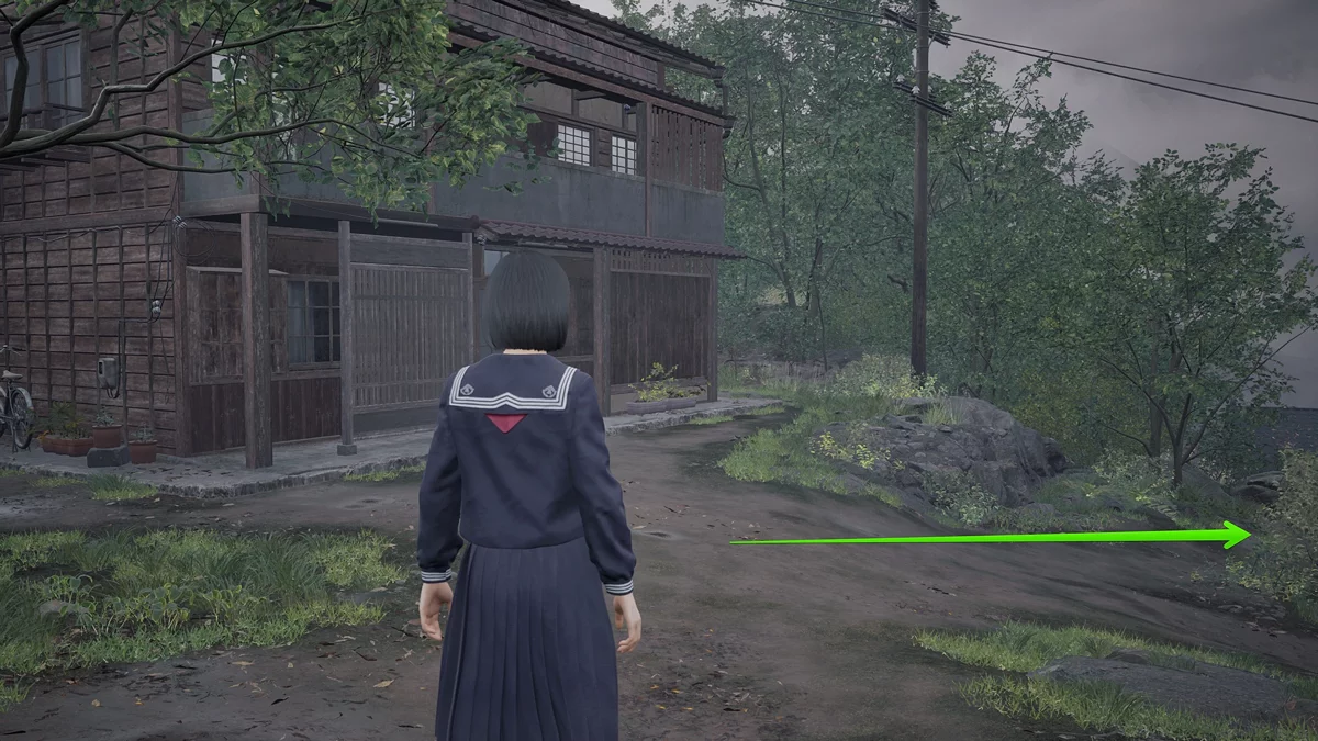 Рухайтеся вперед і подолайте матку. Слідуйте на північ, обійдіть будинок з правого боку і вийдіть на стежку з прологу. Вирушайте до дому Хінако, уникаючи зіткнень з монстрами. Лише на самому верху потрібно буде вбити стрибуна з багатоголовим.