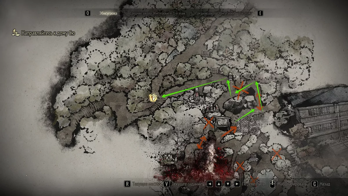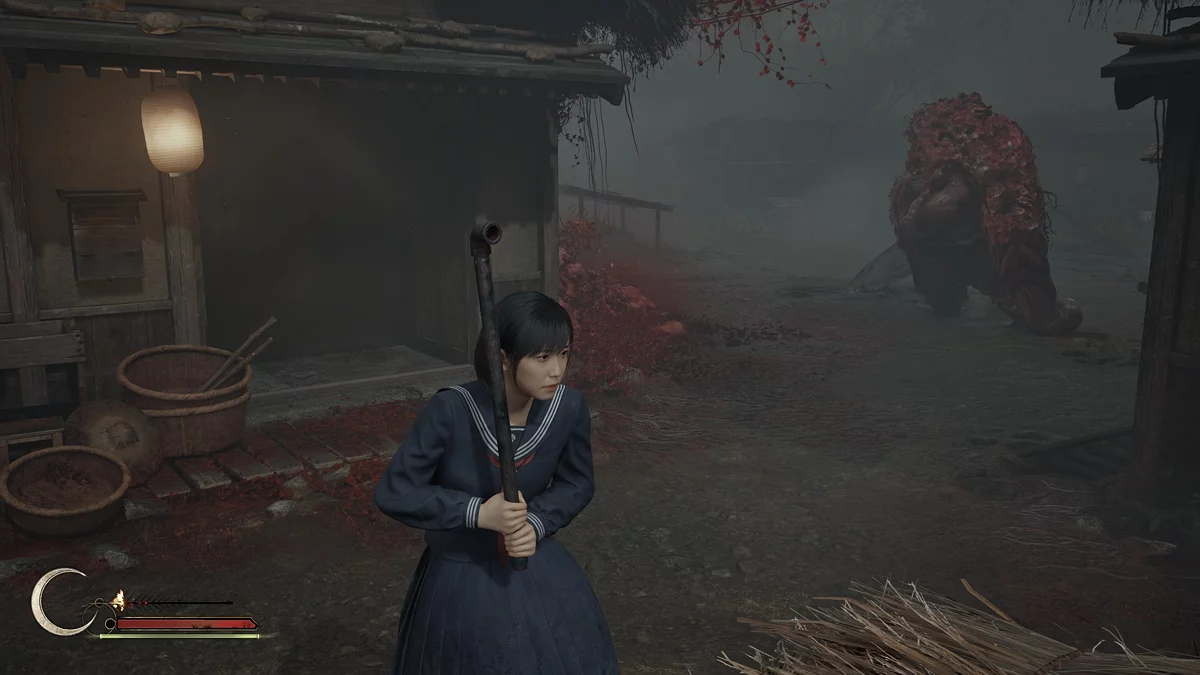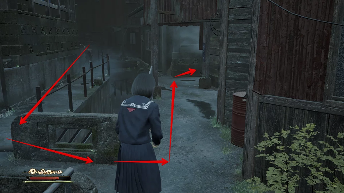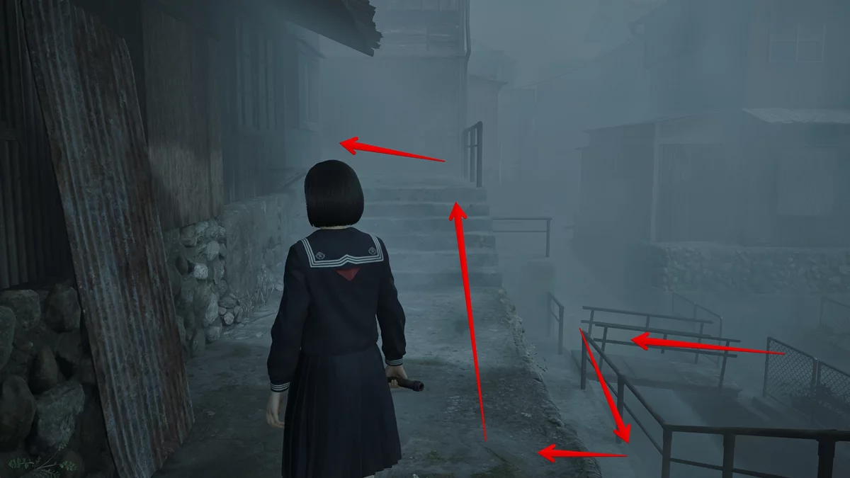 Рухайтеся вперед і подолайте матку. Слідуйте на північ, обійдіть будинок з правого боку і вийдіть на стежку з прологу. Вирушайте до дому Хінако, уникаючи зіткнень з монстрами. Лише на самому верху потрібно буде вбити стрибуна з багатоголовим.