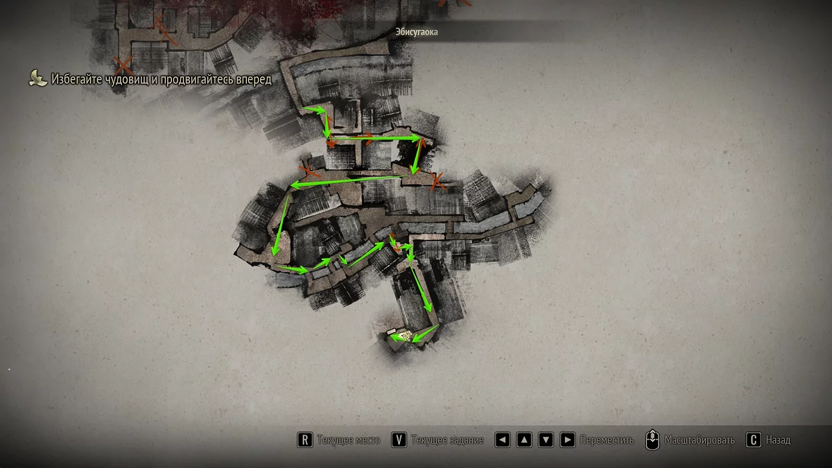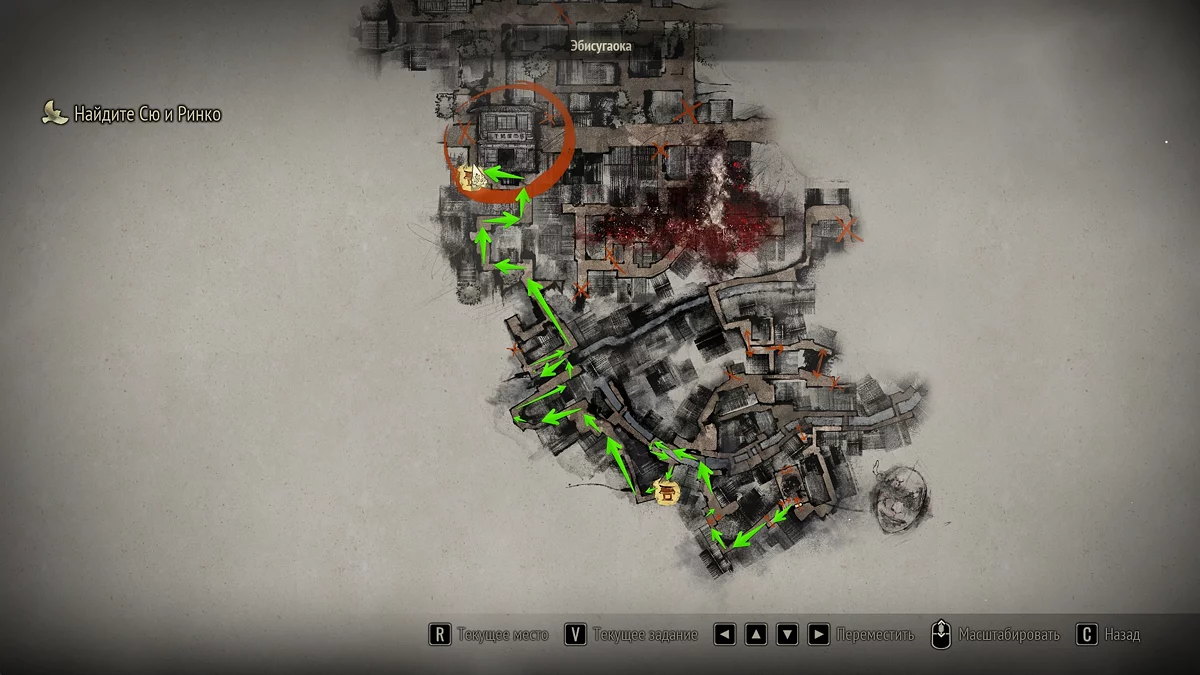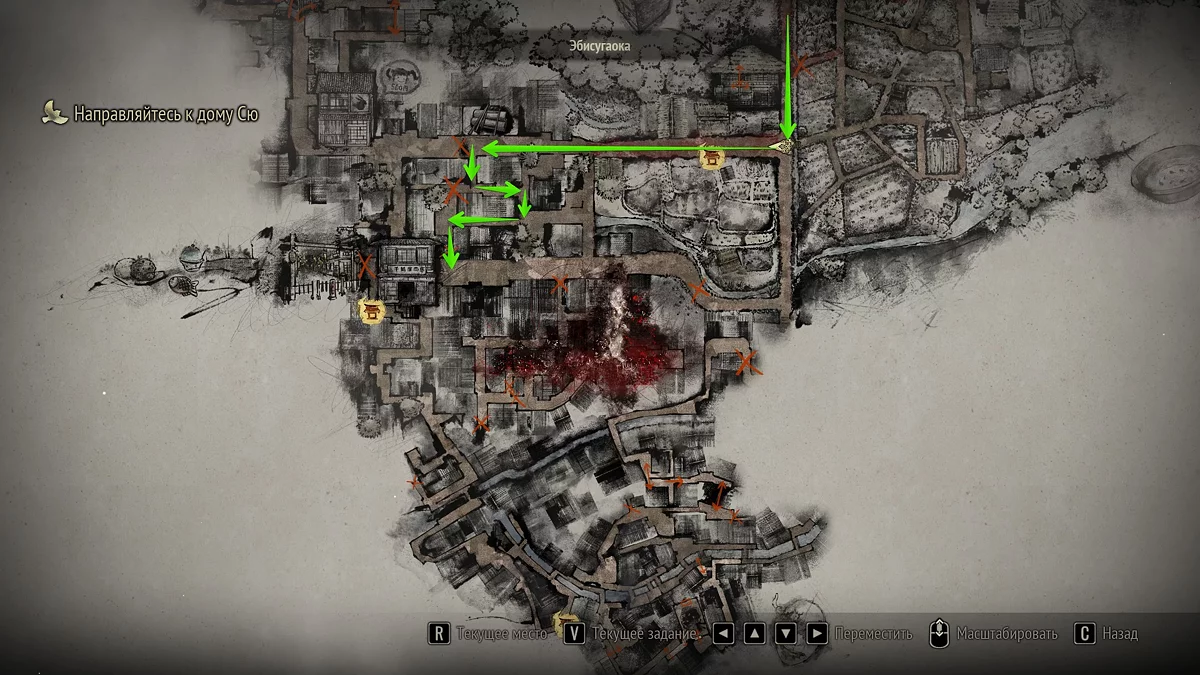 Слідуйте від дому Сю стежкою вперед і збережіться біля вівтаря. Продовжуйте рух, поки не зустрінете матку, яку потрібно буде вбити. Спускайтеся дорогою і заверніть наліво за кут, потім йдіть до перехрестя. Поверніть направо, обійдіть будівлю з правого боку, усуньте мечницю і стрибуна. Лізьте під колоду і увійдіть у місто.
