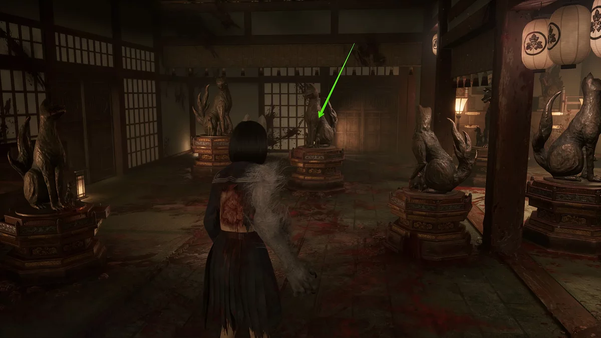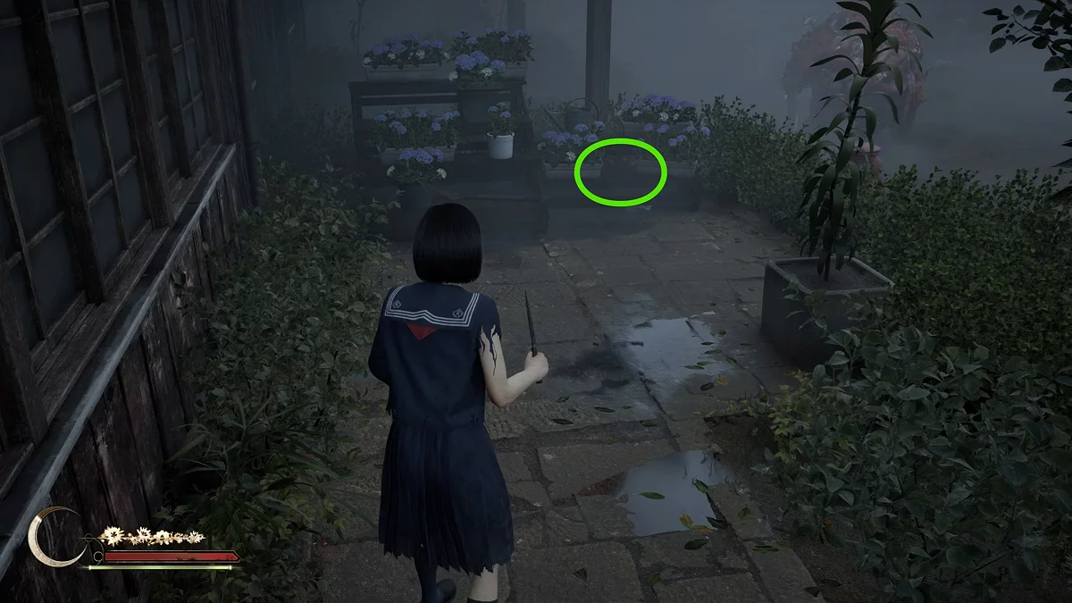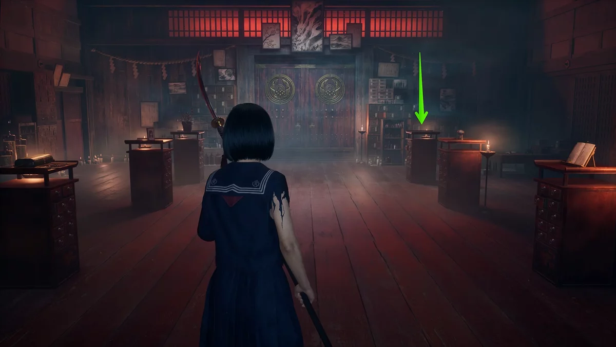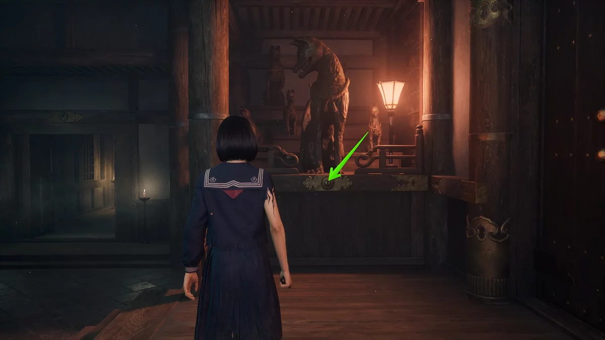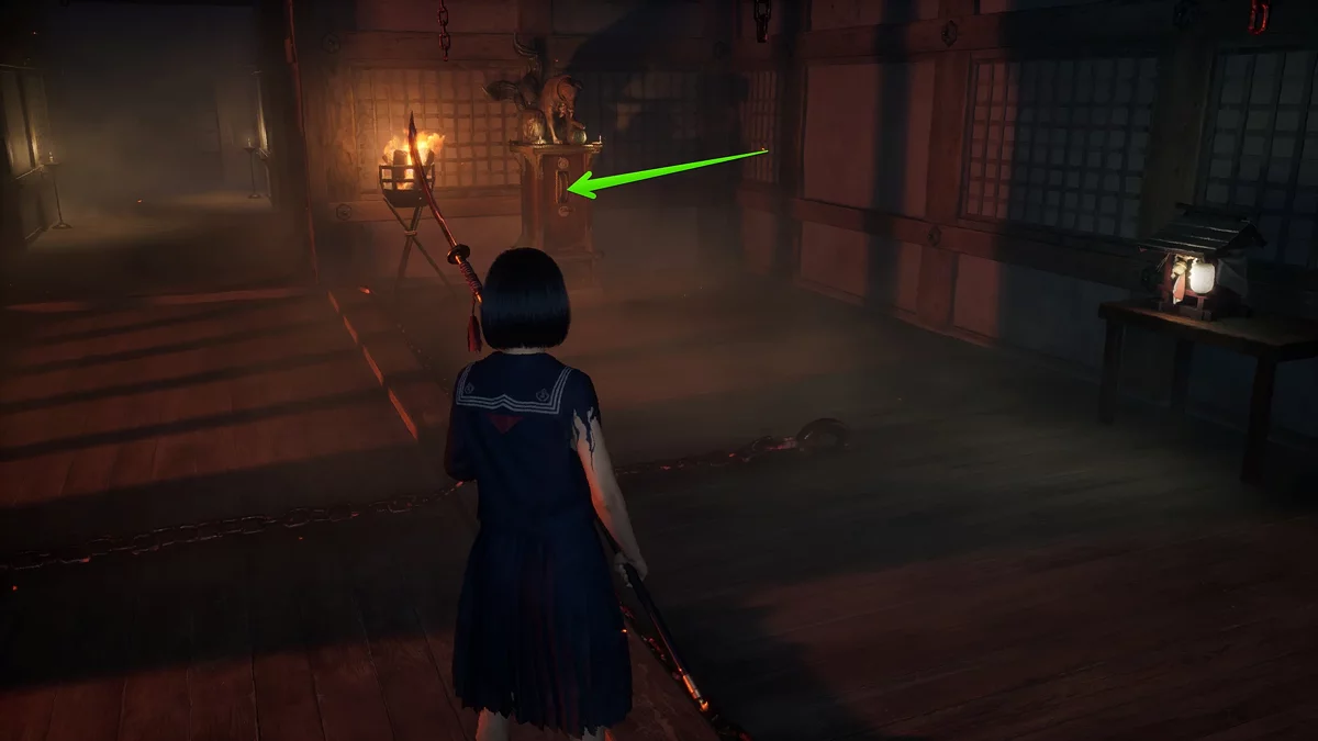 Рухайтеся вперед за чоловіком у масці, у нього в руці буде синій ліхтар. Далі героїня підбере з вівтаря ніж кайкэн. Після цього продовжуйте слідувати за незнайомцем.