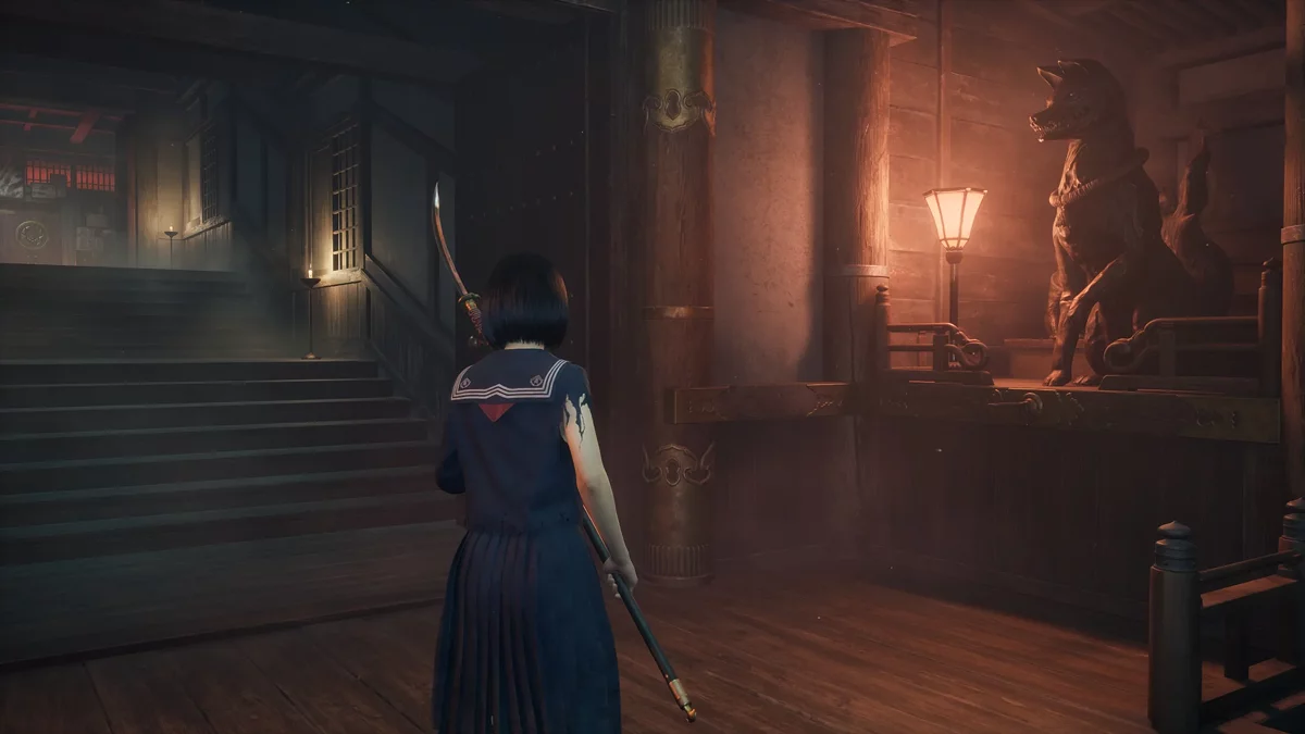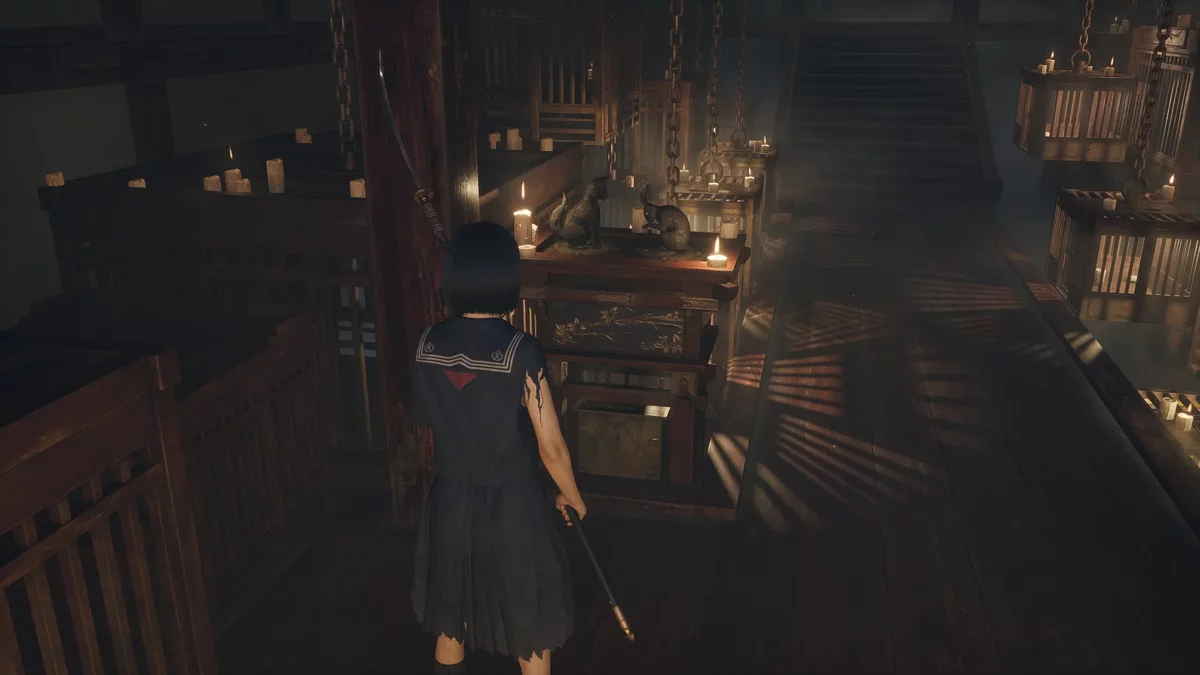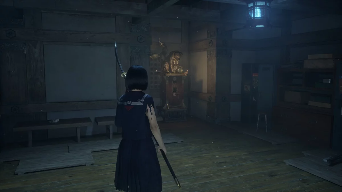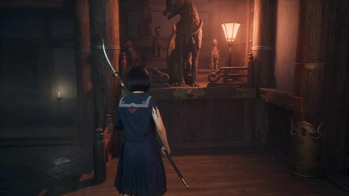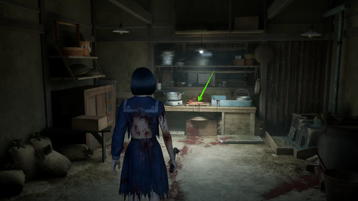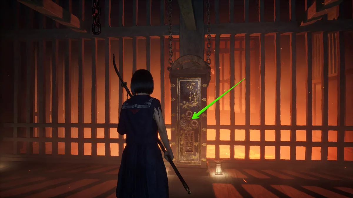 Рухайтеся вперед за чоловіком у масці, у нього в руці буде синій ліхтар. Далі героїня підбере з вівтаря ніж кайкэн. Після цього продовжуйте слідувати за незнайомцем.