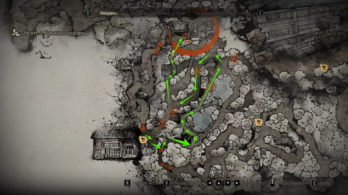 Подивіться катсцену зустрічі героїні з друзями, в кінці якої почнеться погоня від туманного чудовиська. Біжіть у бік камери і в кінці поверніть наліво, потім направо, а потім перепригніть через паркан.