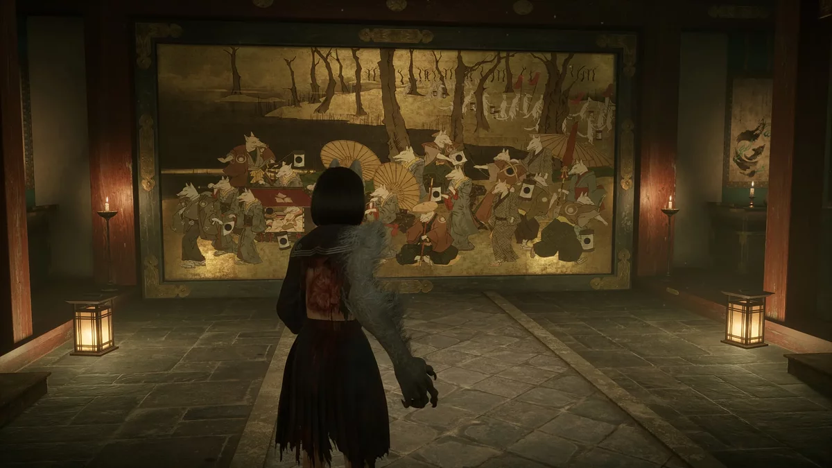 Хінако отримає брошку, за допомогою якої можна відкрити двері та шкатулки з зображенням лиса. Зараз покиньте ритуальний зал і рухайтеся коридором вперед, поки не наткнетеся на гігантську розписану стіну.
