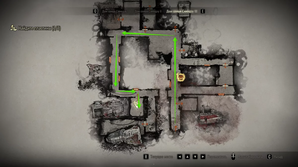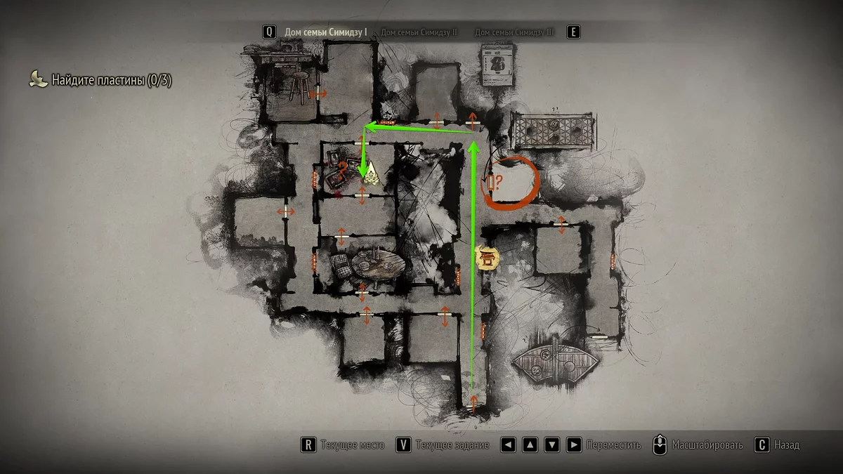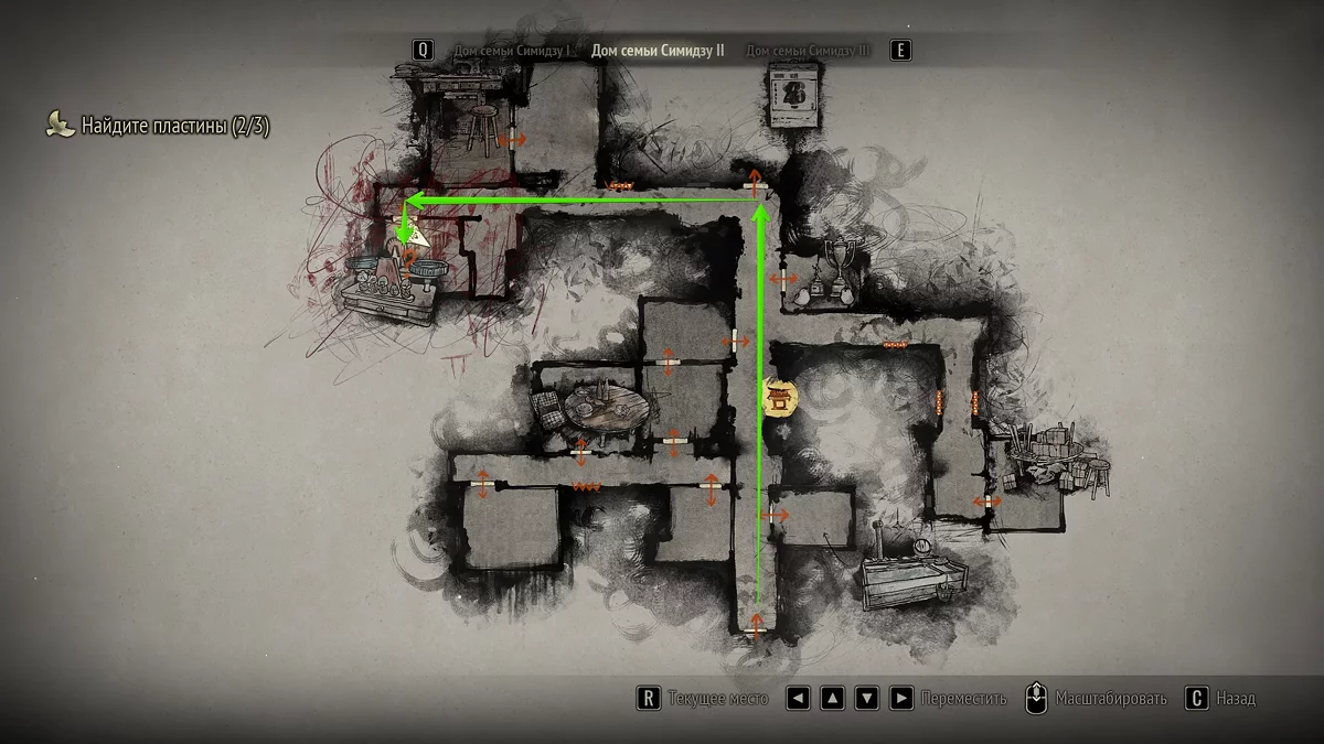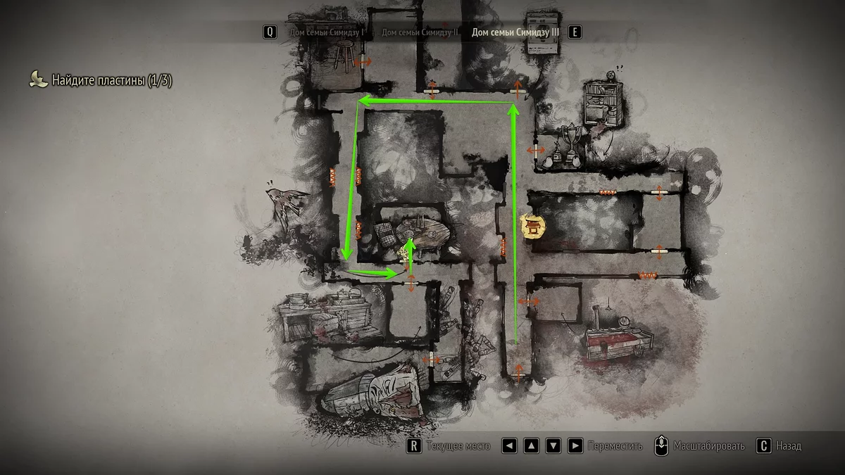 На першому рівні дому Сіміду рухайтеся до переходу на наступну локацію. Поверніть наліво і увійдіть у першу кімнату зліва. Ви потрапите в зал зі знімками, які можна повертати вгору і вниз. На одній зі стін не вистачає одного фото.