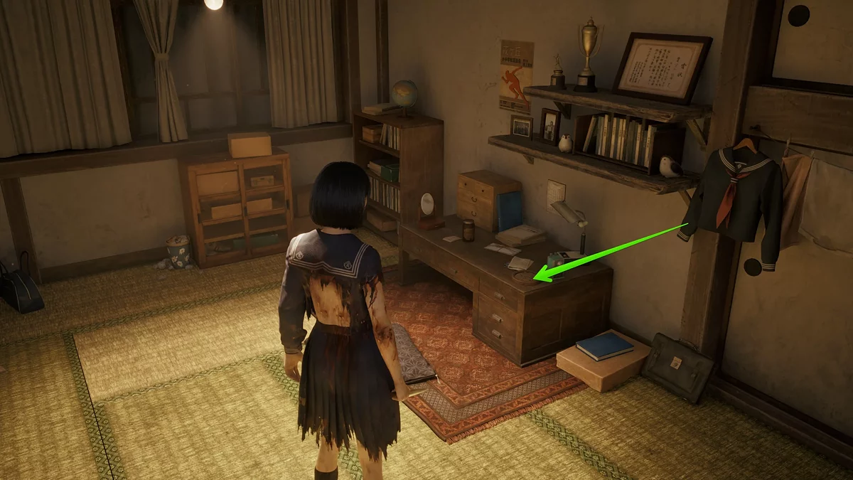 Увійдіть на другий рівень дому сім'ї Сімідзу. Зайдіть у перші двері зліва. Пройдіть через кімнату в коридор і відкрийте приміщення праворуч. Подивіться спогад Хінако про побутову сварку і підберіть зі столу пожовтілий календар.