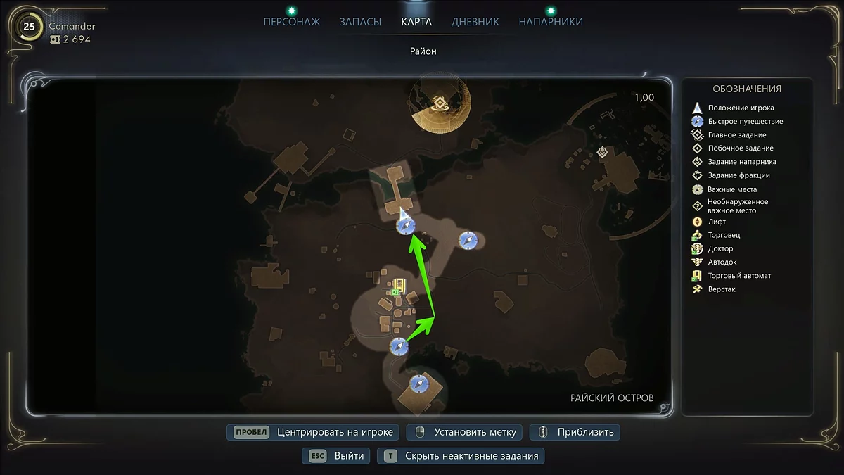Знайдіть на сході біля полів ліфт. Щоб його полагодити, потрібно мати третій рівень навички «Інженер». В іншому випадку поверніться від ліфта направо і слідуйте вздовж скель, поки не опинитеся в локації «Славна скеляста роща суверена» (Sovereign's sweet spire grove).