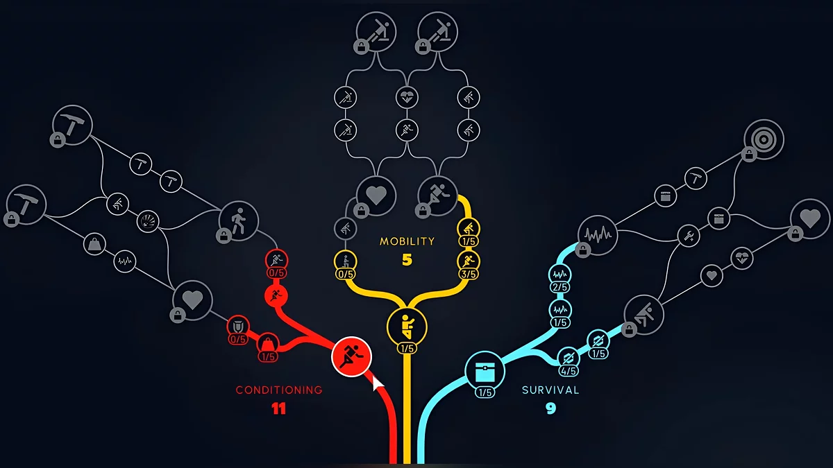 Можливість вижити після смертельного поранення може перевернути ситуацію на полі бою на вашу користь. Навички ближнього бою потрібні тим, хто прагне залишатися непоміченим для супротивників. Інші вміння дозволять отримати більше матеріалів. Це корисно, але не обов'язково.