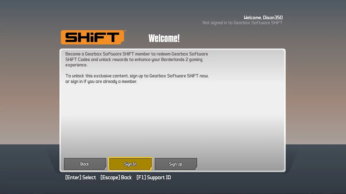 После запуска Borderlands 2 выберите в меню «Дополнительно» (Extras) — SHiFT — Sign UP. В итоге появится регистрационная форма, где вы сможете создать аккаунт.