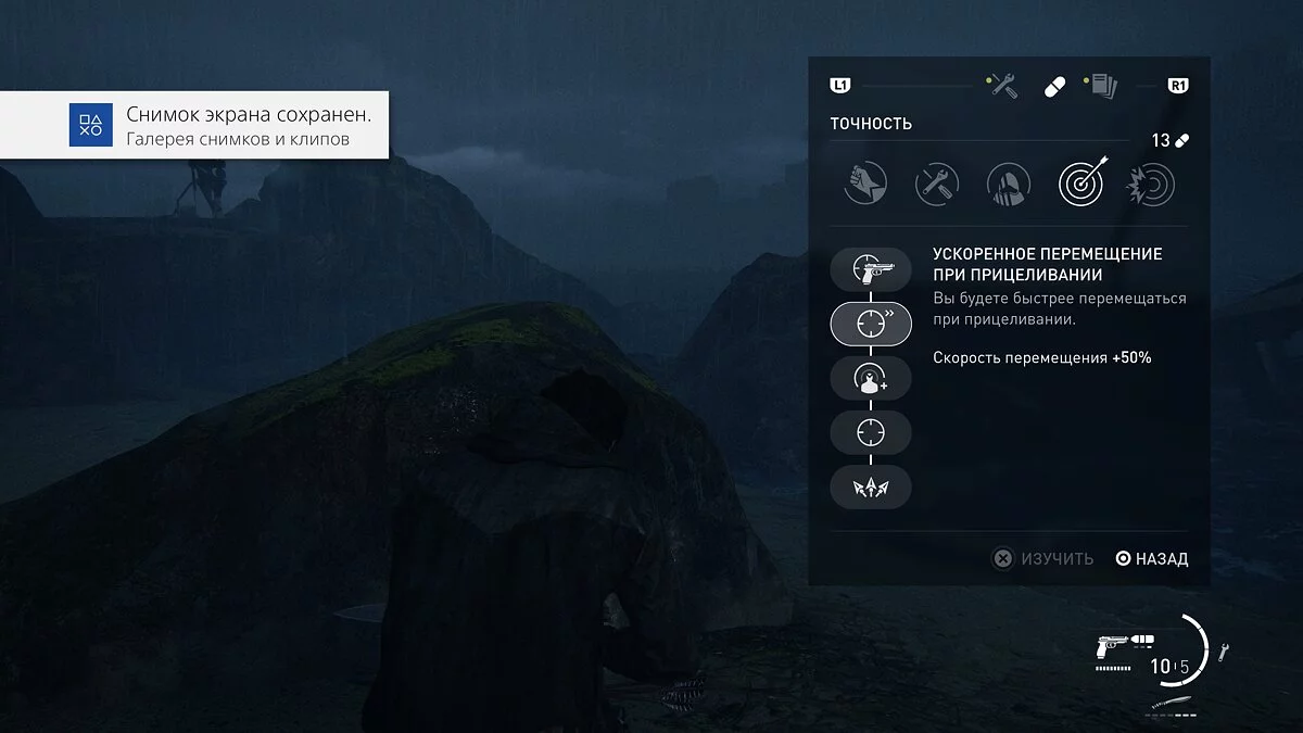 Модифікація «Стрілецька зброя» дозволяє прокачати наступні навички: «Виготовити запалювальні патрони», «Виготовлення патронів для мисливського пістолета», «Прискорене переміщення при прицілюванні», «Більше патронів для мисливського пістолета» та «Більше запалювальних патронів». Можна знайти в главі «Сіетл, день 1 — Ліс».