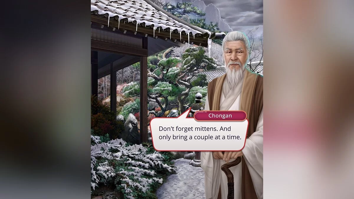 Мэй переносит брёвна. Нужно трижды всё сделать в нужном порядке, чтобы история продолжилась.
