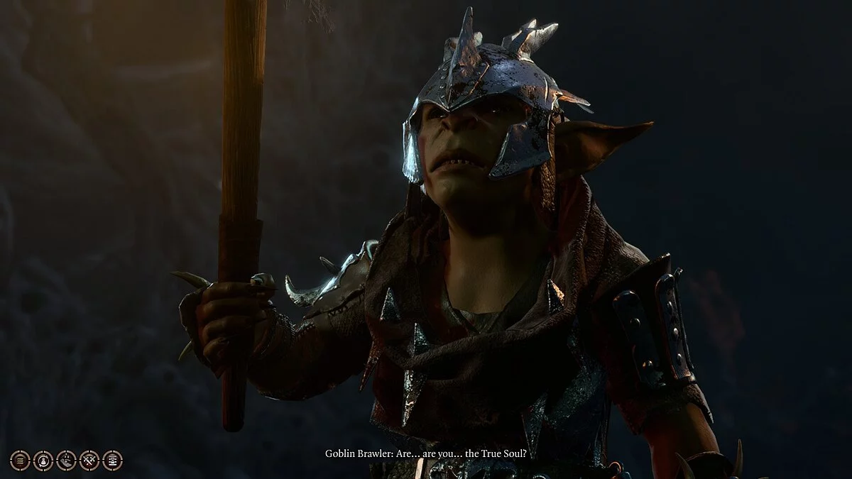 Соглашаемся помочь Арфистам и идем к месту засады, которое будет отмечено на карте. Добравшись до разрушенного здания, займите укрытие. Начнется катсцена, где вы увидите колонну культистов во главе с паукообразным монстром. У него в руке будет лунный фонарь. Один из гоблинов услышит вашу группу, и вам нужно выбрать, как среагировать на это.