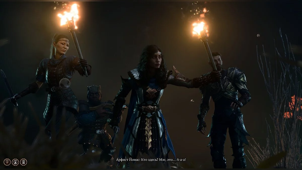 После победы в битве вылечите всю группу и возьмите в руки факелы. Арфисты расскажут вам, где найти безопасное местно, которое не подвержено проклятию. У вас на карте появится маркер. Начинайте движение в его сторону. Спустя некоторое время ваша группа наткнется на труп странного ворона на обочине дороги. Если вы провалите магическую проверку, то на месте появится огромная стая порченных ворон. Используйте заклинание с уроном по площади, чтобы быстро расправиться с противниками. После боя продолжайте движение в безопасную зону.