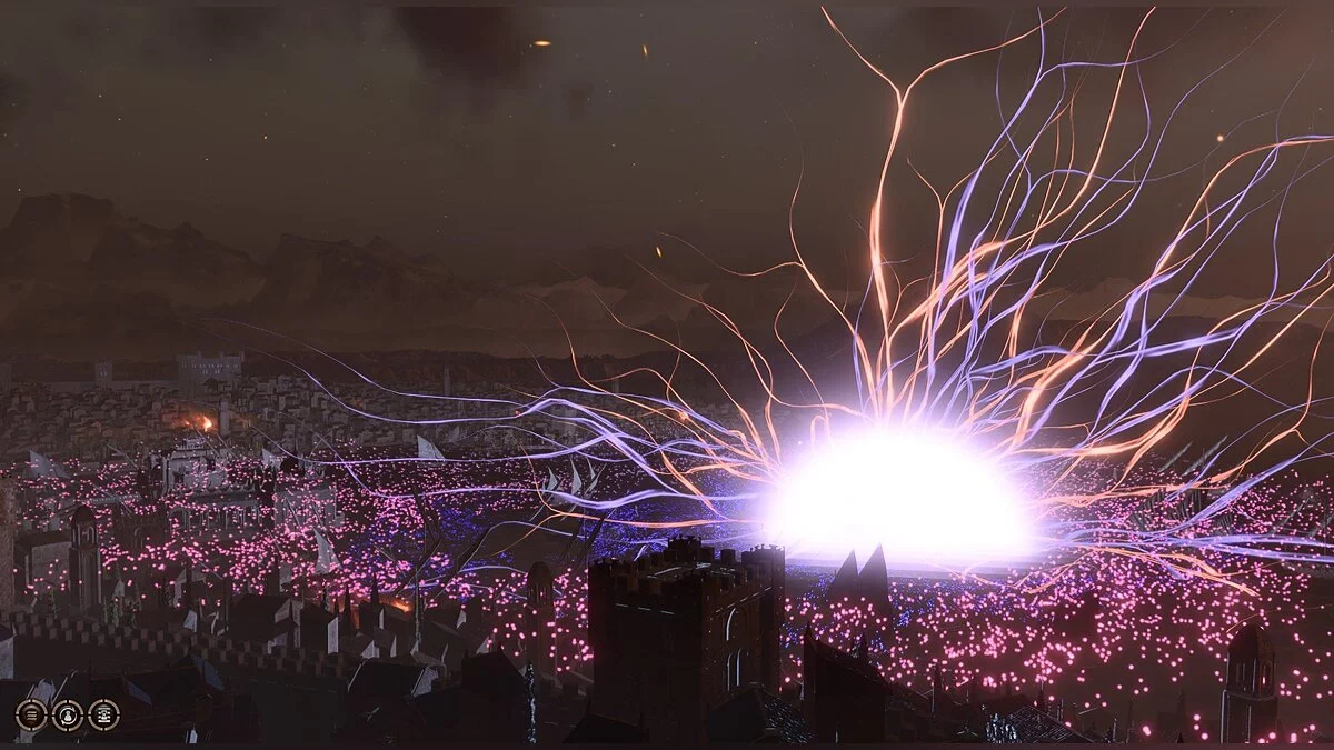 Начнется битва с последователями Баала, иллитидами и пожирателями интеллекта. Остерегайтесь светящихся кругов на земле. Каждый раунд будет происходить авиаудар. Вам необходимо провести только одного члена группы к двойным дверям на самом верху. Как только он коснется ее, то воспроизведется катсцена. Драконы уничтожат корабли наутилоидов.
