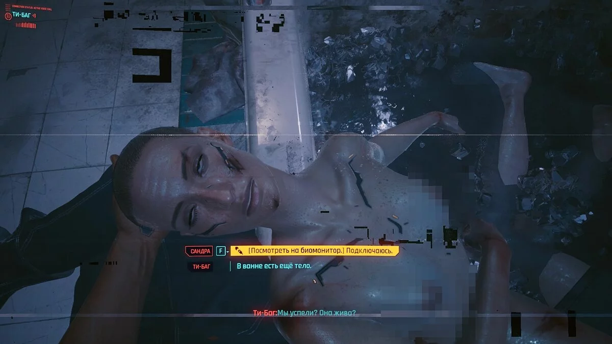 В ванной осмотрите несколько трупов. Подключитесь к биомодулю девушки, затем используйте инжектор на ней и вынесите на балкон. Когда прибудет «скорая», положите ее на носилки. Покиньте здание и садитесь в автомобиль. По дороге вас начнут преследовать члены банды. Постарайтесь как можно быстрее избавиться от водителя фургона, чтобы прекратить погоню. Для завершения задания поднимитесь в свою квартиру и ложитесь спать. Не забудьте распределить очки навыков и способностей, а также осмотреть тайник с оружием.