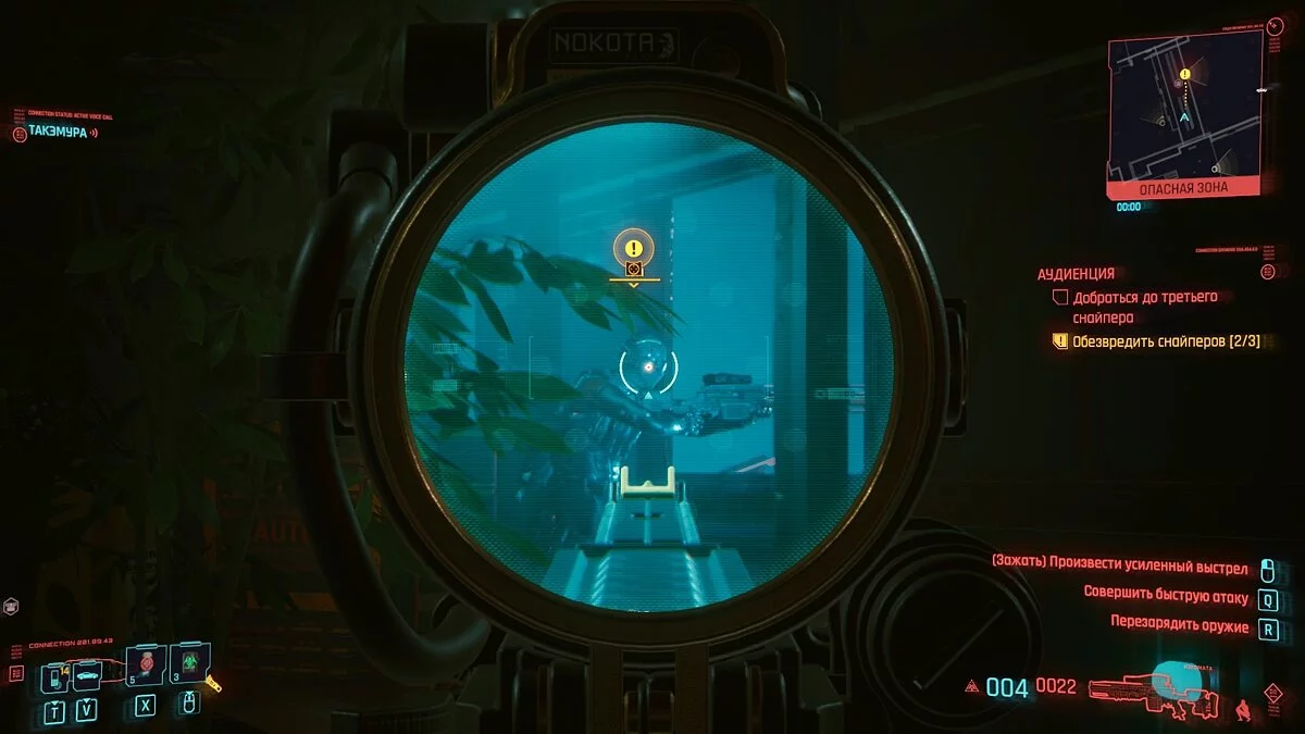 На этом задание не заканчивается. Спуститесь на лифте вниз и следуйте за маркером на карте.Доберитесь до нетраннера и выдерните провод из его головы, после чего на вас нападет босс — Ода. Сперва он начнет атаковать двумя катанами, затем переключится на огнестрельное оружие. Используйте укрытия, чтобы спрятаться от его хаотичных выстрелов и не спеша постреливайте в него. Если у вас развиты способности холодного оружия, то вы можете попробовать убить его в ближнем бою с помощью катаны.
