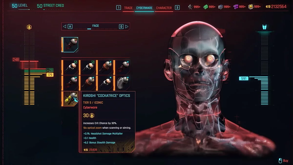 5. Какие импланты выбрать в Cyberpunk 2077 2.0 и Phantom Liberty — лучшие и культовые импланты