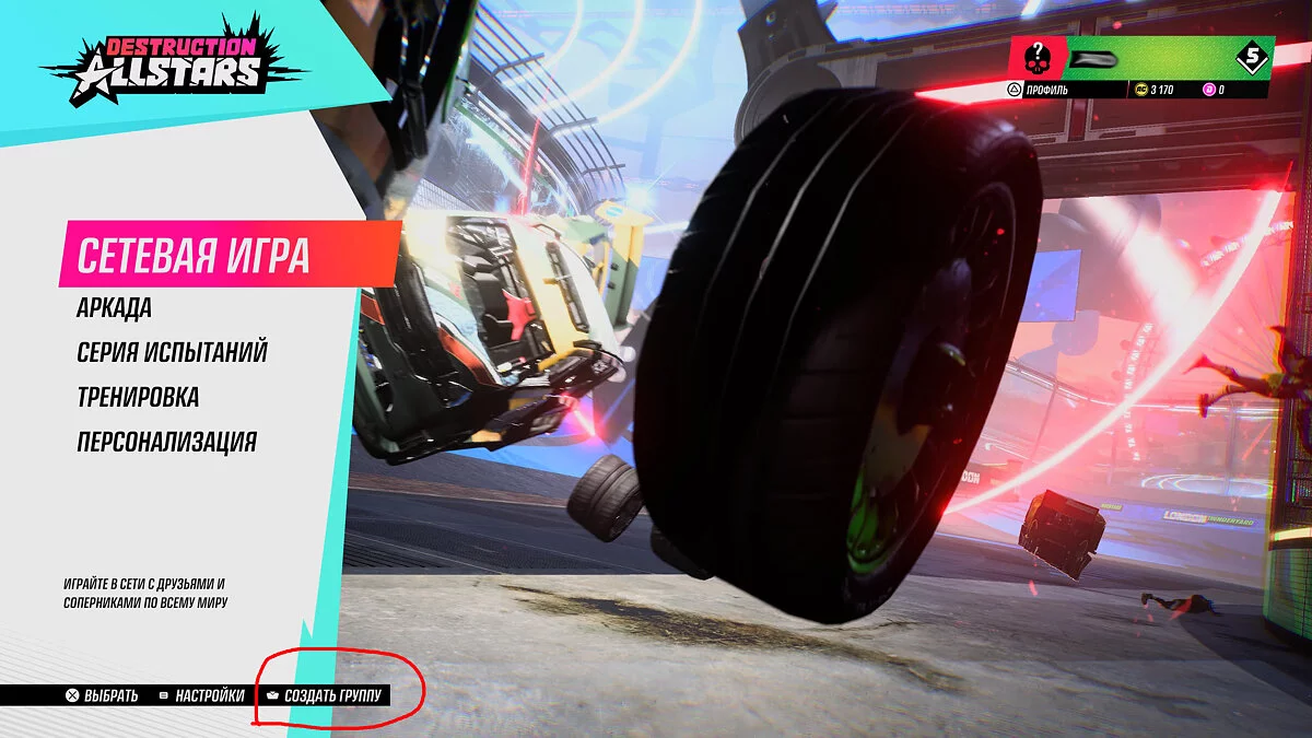 Чтобы пригласить друзей в Destruction AllStars, вы должны сначала пройти обучение, которое начнётся при первом запуске игры. Достигнув главного меню, удерживайте тачпад на геймпаде, чтобы создать группу. Это откроет меню, которое позволит вам пригласить любого из вашего списка друзей в вашу игру. После того, как все присоединятся, вы можете выбрать режим «Сетевая игра». Начинать поиск игры может только лидер команды, у которого над аватаркой в нижней части экрана нарисована корона. Если вам нужно внести изменения в группу, вы можете снова зажать тачпад в главном меню, чтобы добавить новых игроков или покинуть группу.