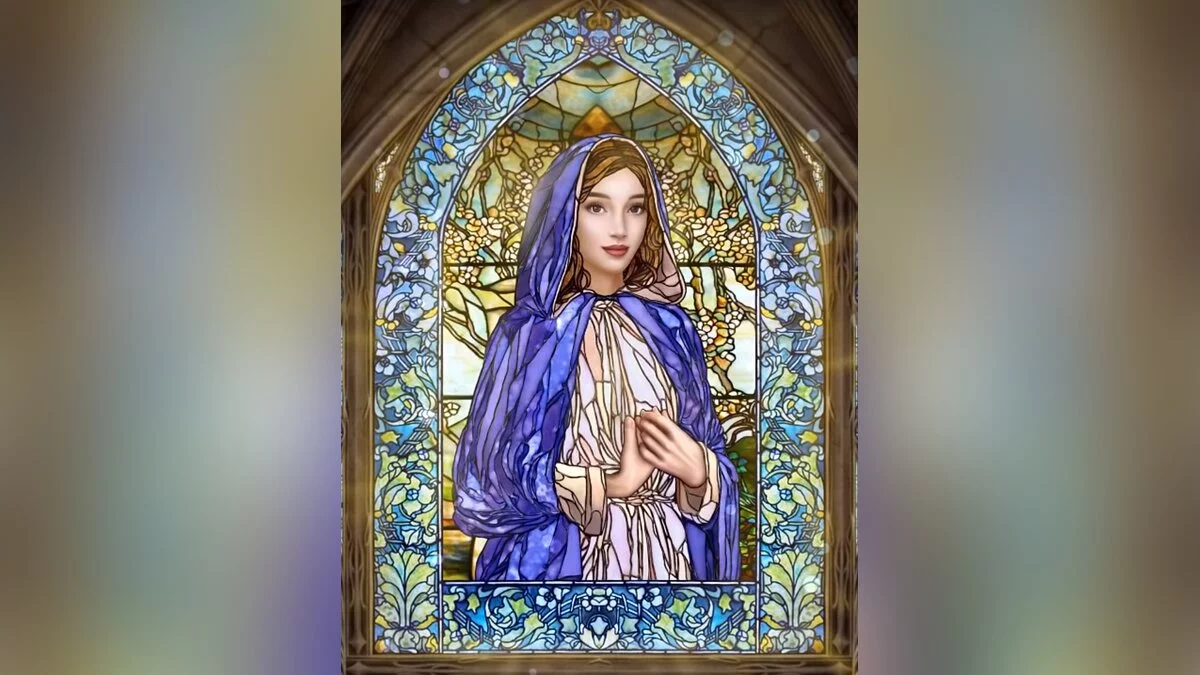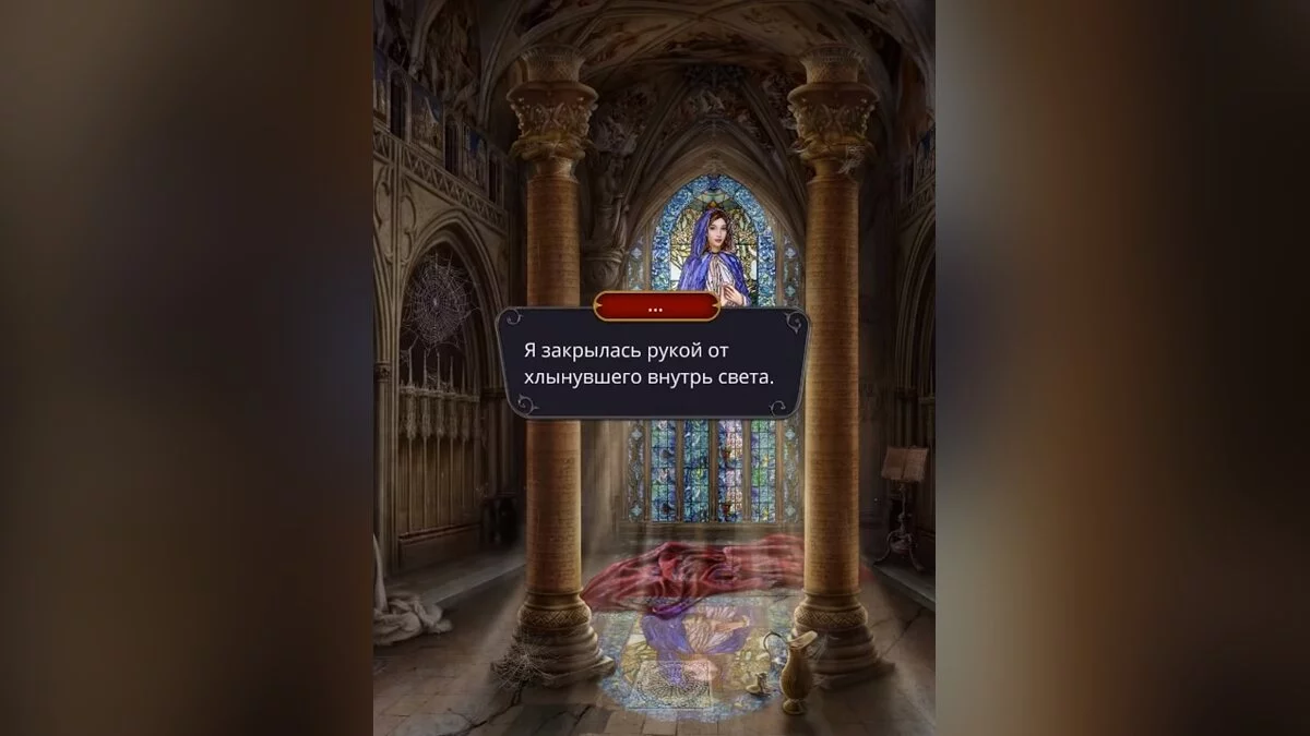Юстин расскажет, что дневной свет противопоказан фрескам, поэтому окно помещения закрыто тканью. Лео случайно заденет тряпку и откроет скрытый витраж, на котором изображена точная копия героини.
