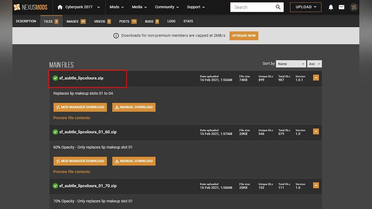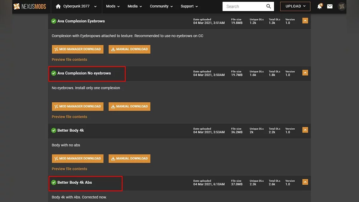 На странице модов в разделе «Files» некоторые авторы выкладывают несколько файлов для скачивания. Они отличаются друг от друга тем, что именно они меняют во внешности. Вам не нужно скачивать все файлы, а только следующие:
