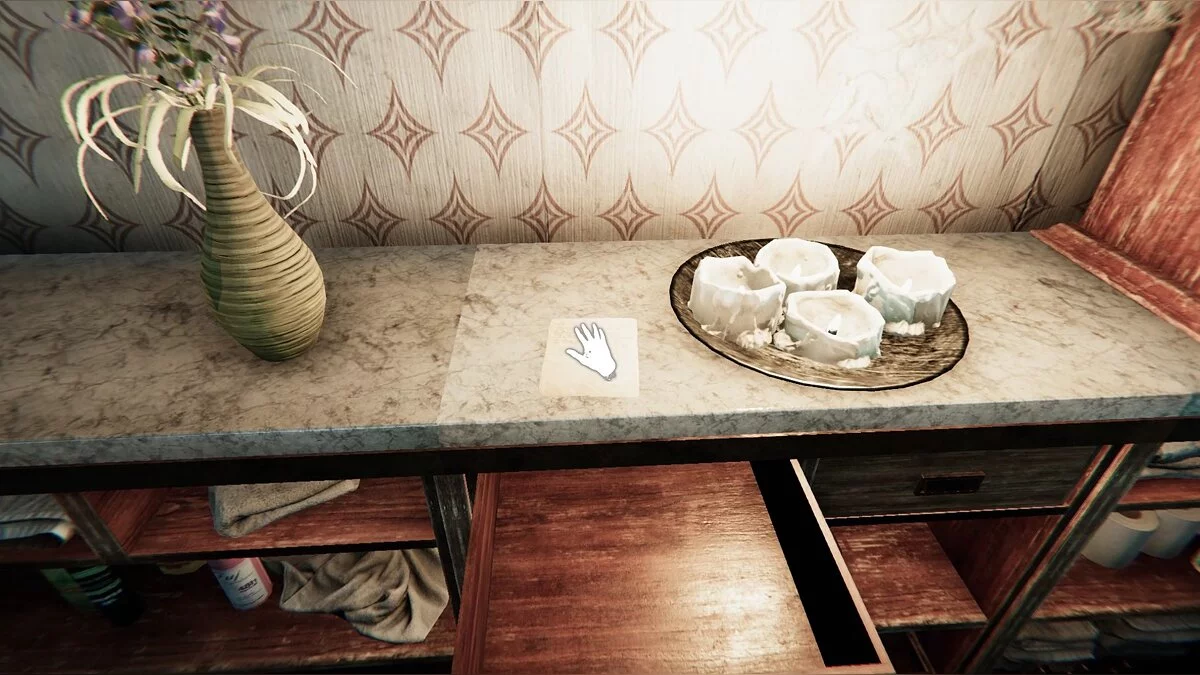 Снова оказавшись в своём номере, откройте окно и пройдите по карнизу в соседнюю комнату. Рядом с кроватью в тумбочке можно подобрать левую игрушечную руку. Спуститесь на первый этаж, осмотрите запертые входные двери и пройдите на ресепшн. Прочтите записку на столе у свечей (без этого вы не сможете взять ключ от номера 108), заберите ключ, поднимитесь на второй этаж и откройте эту дверь.
