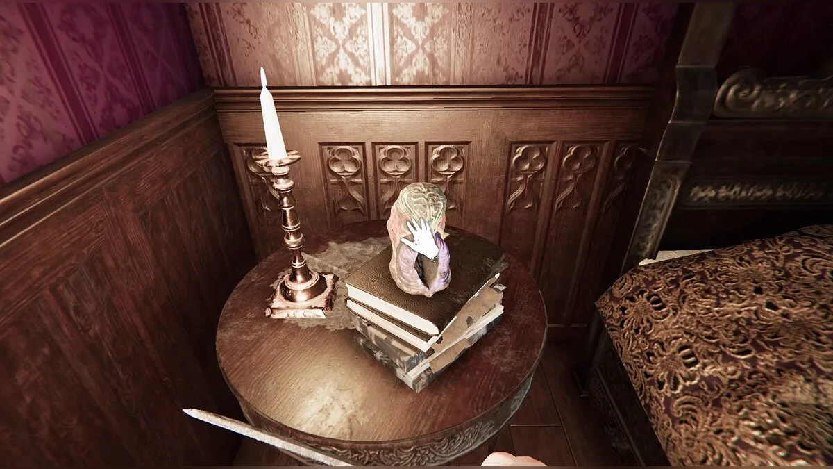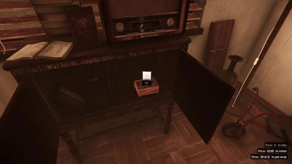 Сразу у входа возьмите болторез, откройте ящик с медикаментами и заберите правую игрушечную руку на тумбочке рядом с кроватью. Сейчас вы можете спуститься на первый этаж и установить обе руки игрушечного человечка, который находится на телефонном аппарате (достижение).