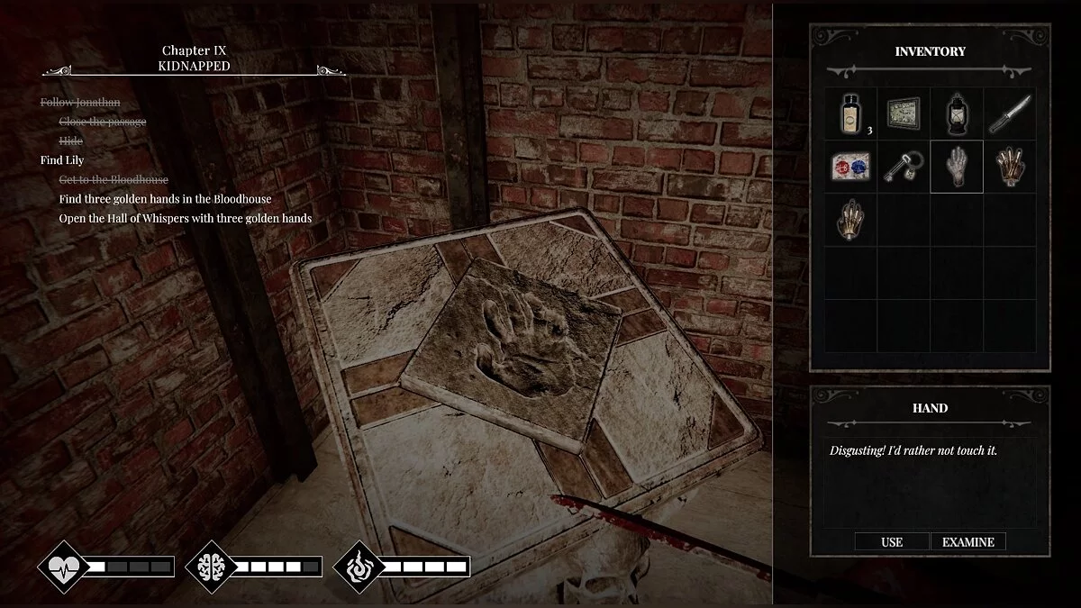 Теперь, когда у вас есть два красных камня, пройдите в комнату с картиной доктора и вставьте их в специальные отверстия. Спуститесь вниз и убейте всех врагов, иначе они будут мешать вам, когда появится палач.