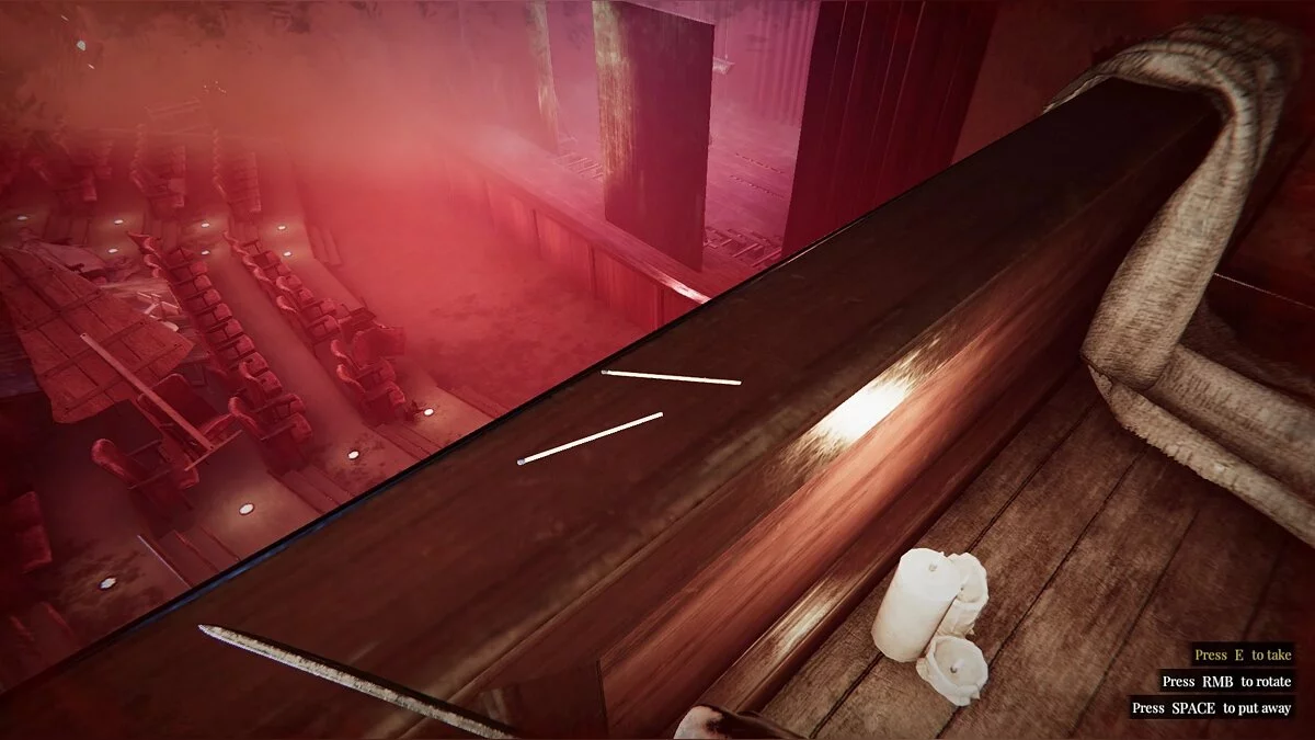 Под балконом справа вы увидите труп, в голове которого торчит ключ. Возьмите его, поднимитесь по рядам наверх и откройте дверь слева. На балконе найдите три спички на столе и ещё две спички на перилах. На центральном балконе включите прожектор. Вернитесь на сцену, зажгите свечи и кадильницы.
