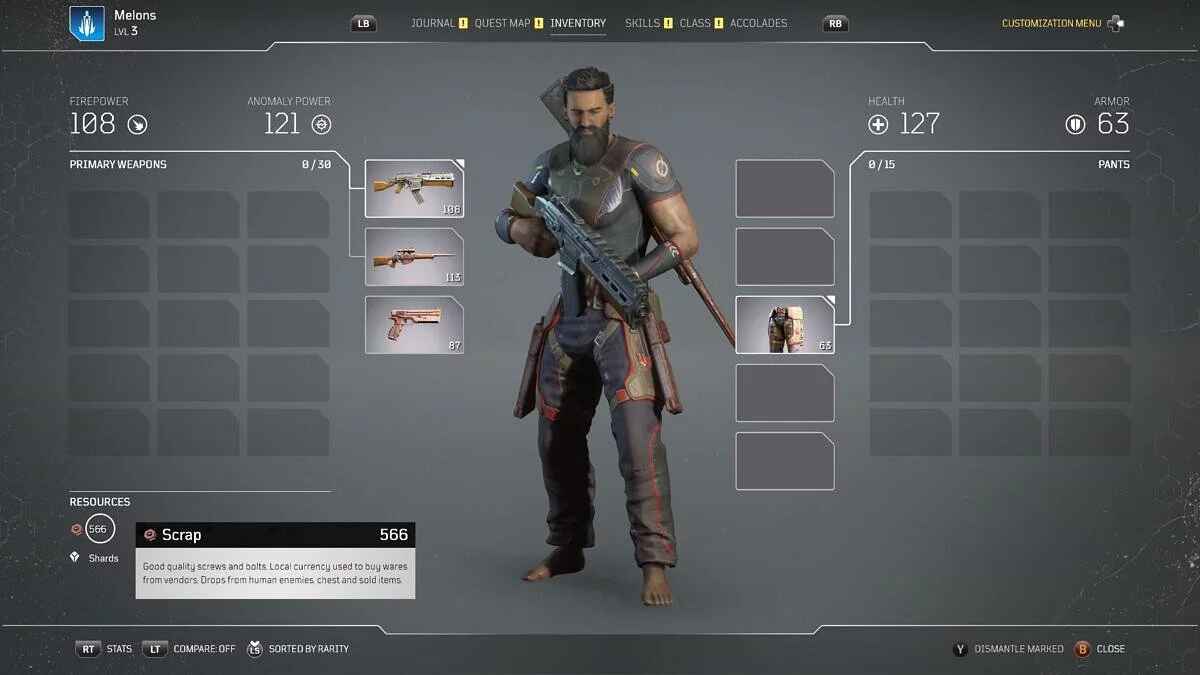 Возможно, вы не захотите продавать все снаряжение, которое вы получаете в Outriders, так как его можно разобрать и получить некоторые полезные компоненты для крафта, такие как железо (Iron), кожа (Leather) и титан (Titanium). Доспехи низкой редкости (серого цвета) также можно разобрать, чтобы получить лом. Хитрость здесь в том, что если вы разбираете обычную часть снаряжения в Outriders, вы получите меньше запчастей по сравнению с суммой, которую вы получаете, продавая её.