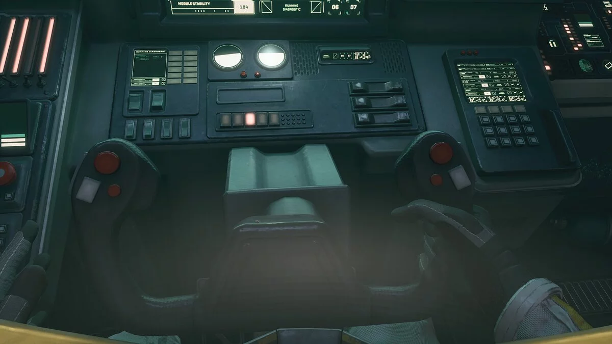 Иногда в начале цикла вы будете играть от первого лица. Каких-то специальных возможностей это не даёт. Если вы очнётесь внутри корабля — сможете посмотреть свою статистику или запустить тренировочное испытание. В итоге дорога всё равно одна — наружу.