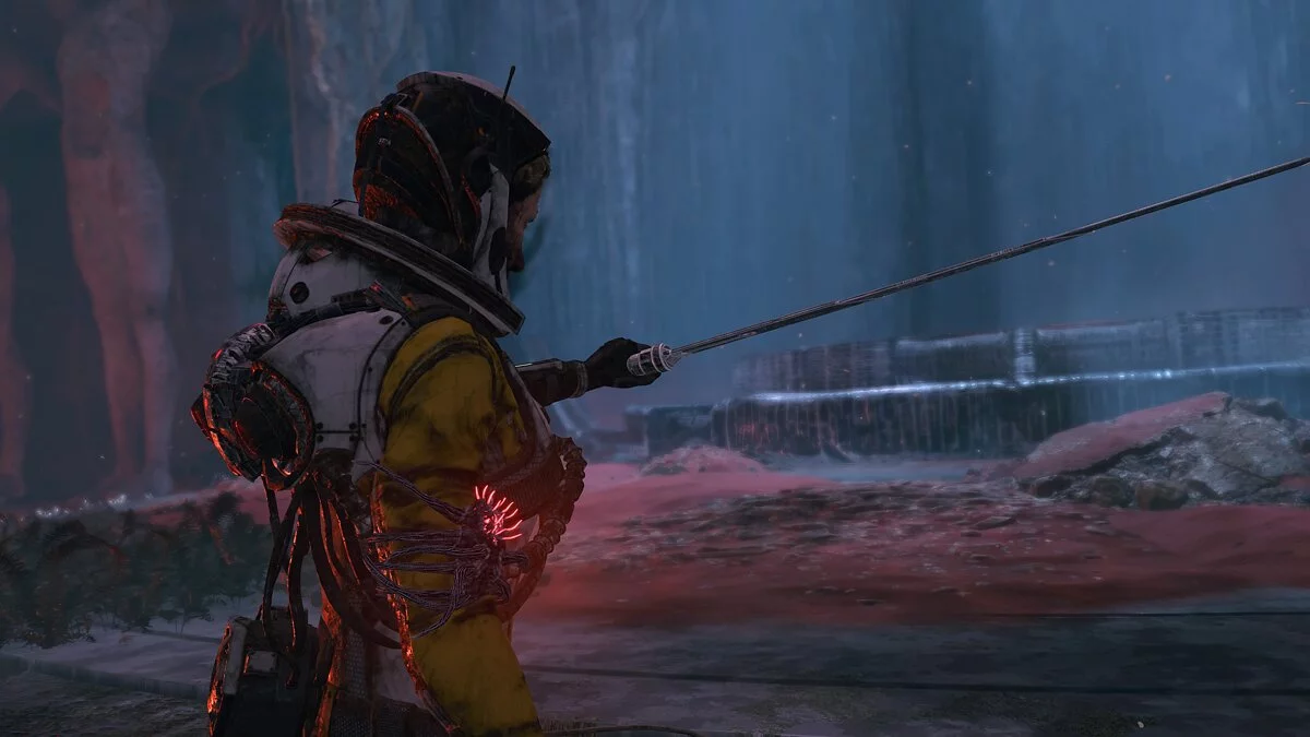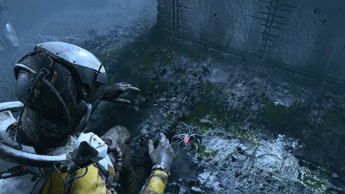 Новая локация также покажется знакомой. Раньше тут была песчаная пустыня, сейчас же кругом снег. Здесь вы найдёте новое постоянное улучшение для скафандра — Прометеевы изоляторы. Эти устройства на руках дадут возможность свободно перемещаться по поверхности с красной жидкостью.