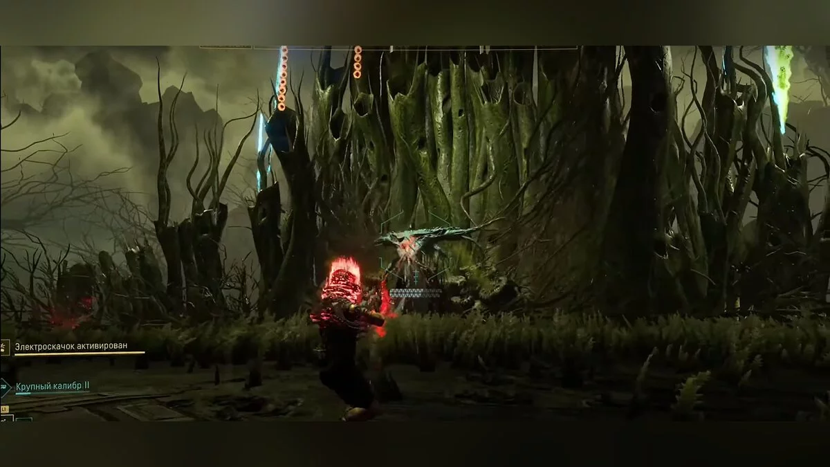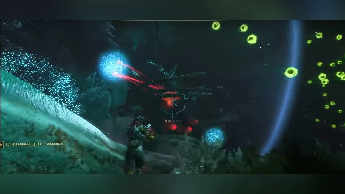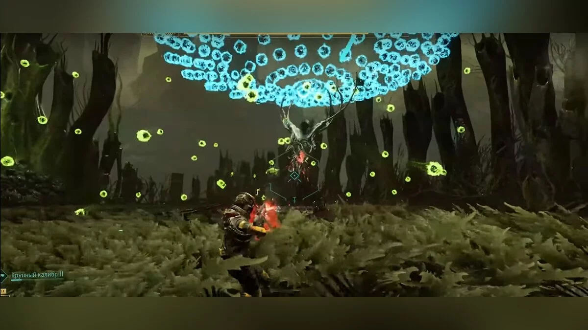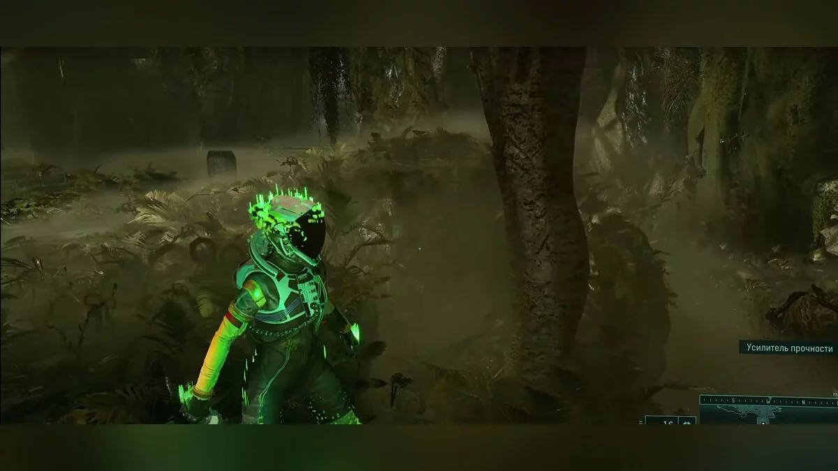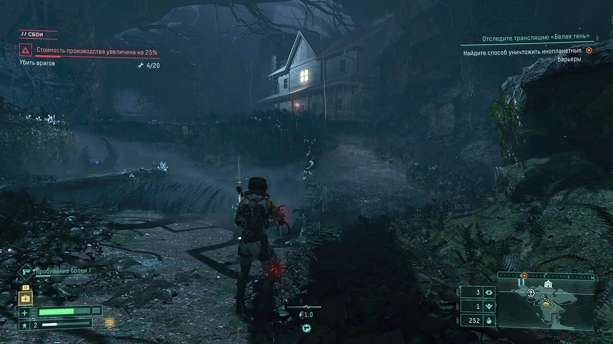 Где-то на этом моменте изучения уровня, вы найдёте первого паразита. Эти существа не атакуют, они одновременно дают постоянный положительный и отрицательный эффекты. Каждый отрицательный эффект называется сбоем, а если их станет слишком много, в скафандре начнут происходить критические ошибки, что приведёт даже к уничтожению найденных предметов или значительному снижению здоровья. Положительные эффекты напротив, способны увеличить наносимый урон или включать автоматический ремонт скафандра при низком уровне прочности. Эффектов очень много, и они существенно меняют геймплей, особенно, когда их достаточное количество. Из сложной игры Returnal может стать практически непроходимой, и наоборот, резко упроститься. К сожалению, заранее это просчитать не получится. Вам либо повезёт, либо нет.