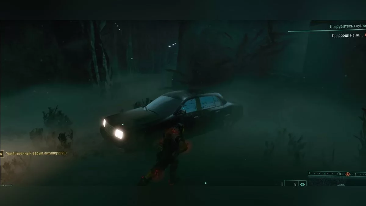 На дне вы увидите автомобиль. Проходите мимо — взаимодействовать с машиной возможно только в секретной концовке. Далее вы увидите парящую в воде сферу, наподобие той, что встречали в самом начале игры. Подойдите к ней, после чего начнётся кат-сцена и финальная заставка.