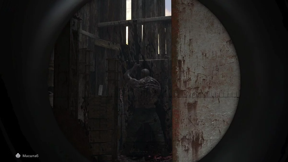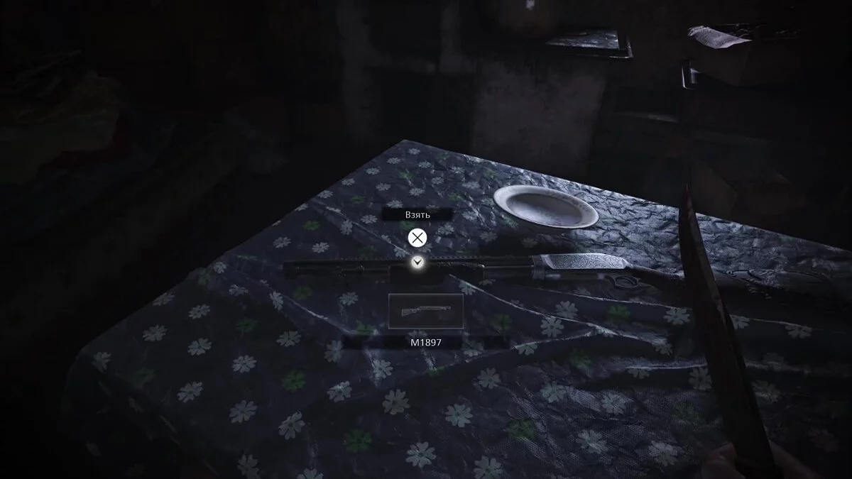 Выходите наружу. Окажется, что монстры сломали ограждения и можно пройти в новую область. Спокойно исследовать местность сейчас не получится, так как на Итана будет целая охота. Поэтому бегите по кровавому следу к дому неподалеку (перед домом подберите патроны) и поднимайтесь наверх. Внутри на столе будет лежать дробовик M1897, также подберите порох и патроны слева в ящике. Забаррикадируйте двери и уходите через подвал. В подвале найдете ржавые обломки. Далее бегите к следующему дому, который расположен выше (на северо-западе). Соберите патроны и траву, далее залезьте на крышу и спрыгните к ящику. Соберите патроны и ржавые обломки. Стреляйте в красные бочки, если противники наседают. Отбивайтесь пока не запустится катсцена.