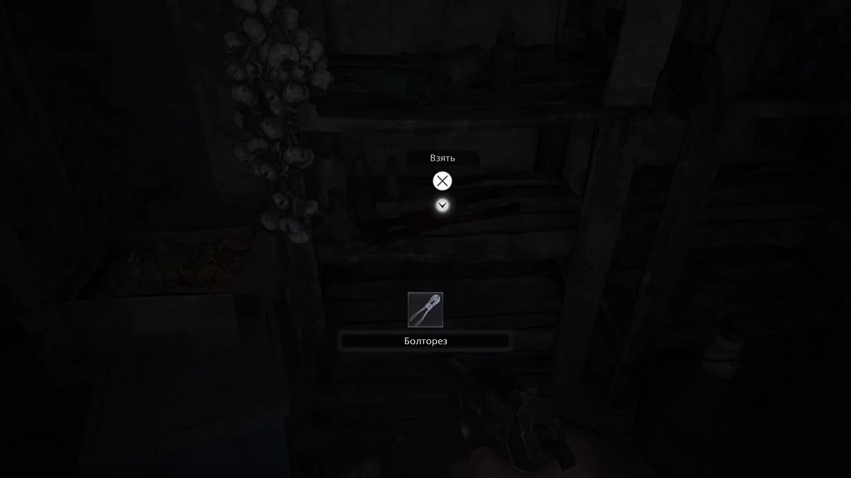 В ближайших домах пока ничего полезного нет, разве что можно осмотреть дворик, чтобы отметить на карте колодец и открыть уличный туалет. Далее идите единственным доступным путем пока не зайдете в дом, где на столе будет нож. Подберите его и сразу же сломайте ящик позади (лекарство). Идите в следующую комнату и загляните за шторку, прикрывающую дверной проем. После катсцены, в ходе которой Итан получит пистолет LEMI, пробирайтесь через подпол. Когда нападет оборотень, убейте его и вернитесь в помещение, где был старик с ружьем. Осмотрите кладовку, в которой он прятался и заберите болторез. Далее зайдите в другой дом в этом же дворе, чтобы собрать припасы. Во дворе можно найти реагент и траву.Теперь срезайте цепь на воротах и выходите.