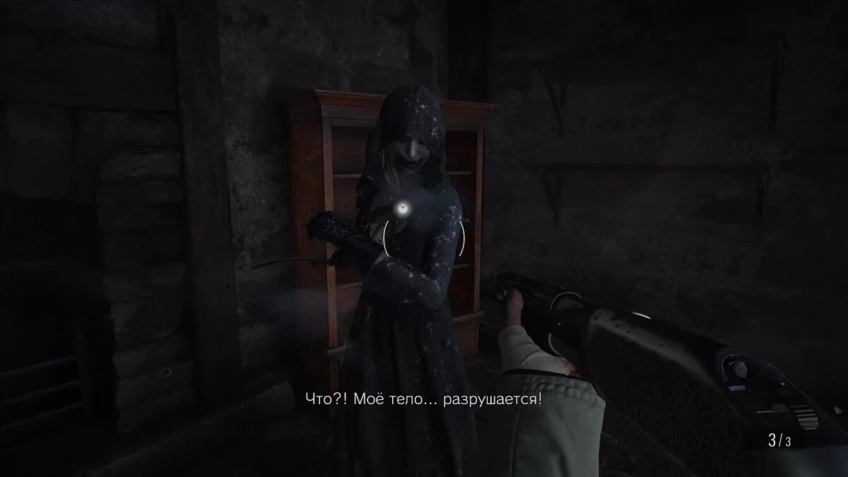 Далее управление снова перейдет к Итану. Предстоит сражение с Мирандой, стоит заранее закупиться. Хотя такая возможность будет предоставлена и потом (если проиграете). Также соберите лекарство и боеприпасы. Далее идите к месту проведения ритуала.