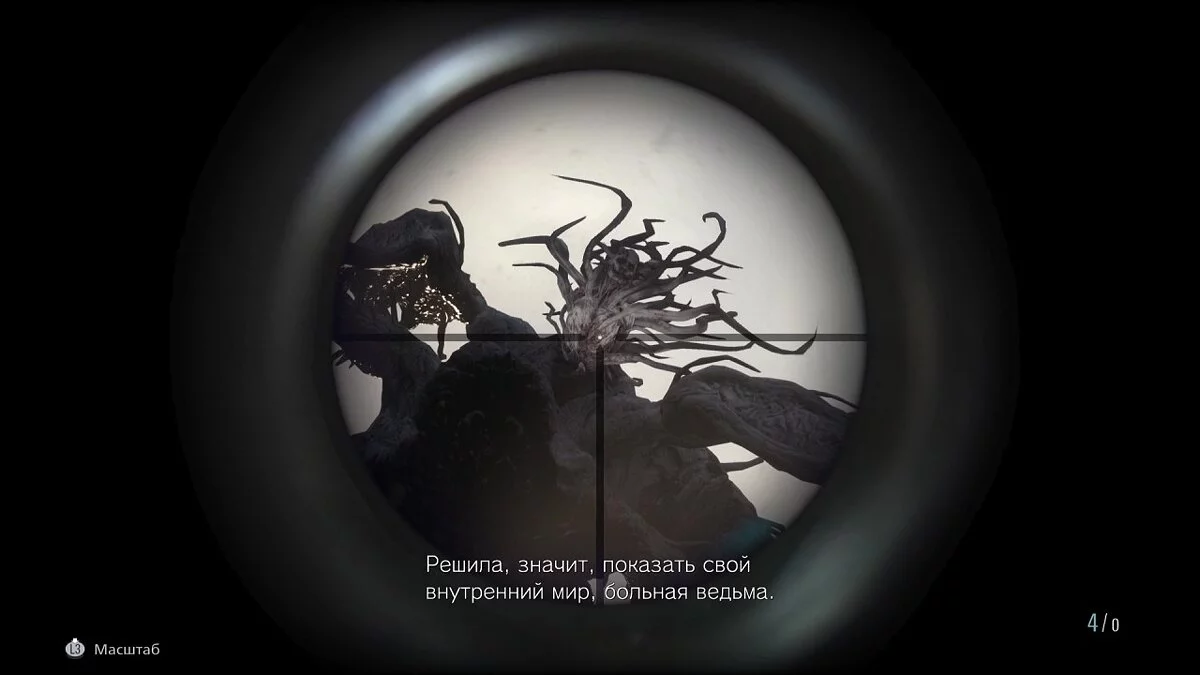 Поздравляем, вы завершили прохождение Resident Evil Village. Наслаждайтесь финальным роликом и не забудьте посмотреть сцену после титров. Далее вам будет доступна «Новая игра +», режим «Наемники» и бонусный магазин.