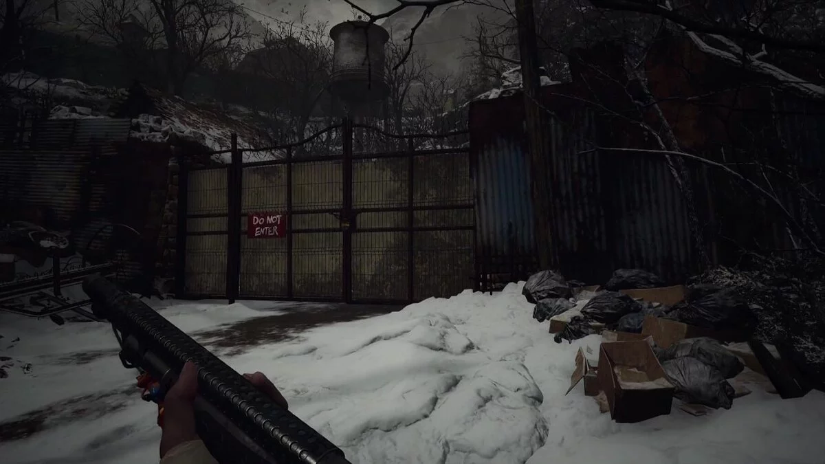 Как только вы выйдете через ворота, которые откроете новым ключом, то попадете в закрытую часть деревни. То место, где на Итана в первый раз напали оборотни. Сразу же на вас нападет особо сильный оборотень. Укрыться можно в ближайшем доме.