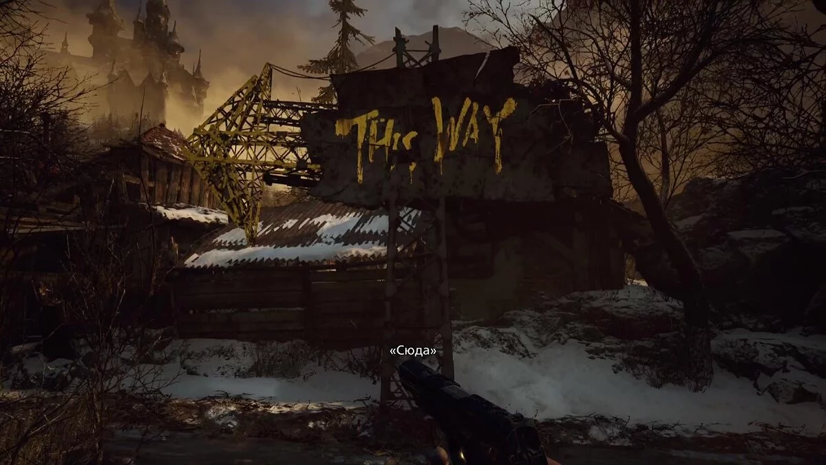 Идите через запретный лес. Рядом с конструкцией из трупов и палок, в кустранике на севере локации, можно найти зеленую траву. На одной из разрушенных стен разбейте ящик с монетами. Оборотни начнут стрелять из лука. Если хотите получить достижение «Хорошая реакция», отбейте стрелу ножом. Во дворе крепости подберите мины, патроны и обломки. На верхнем ярусе есть три комплекта патронов. Активируйте два рычага, чтобы открыть ворота. На сокровище под крепостью пока не обращайте внимание. Получите его после прохождения эпизода.