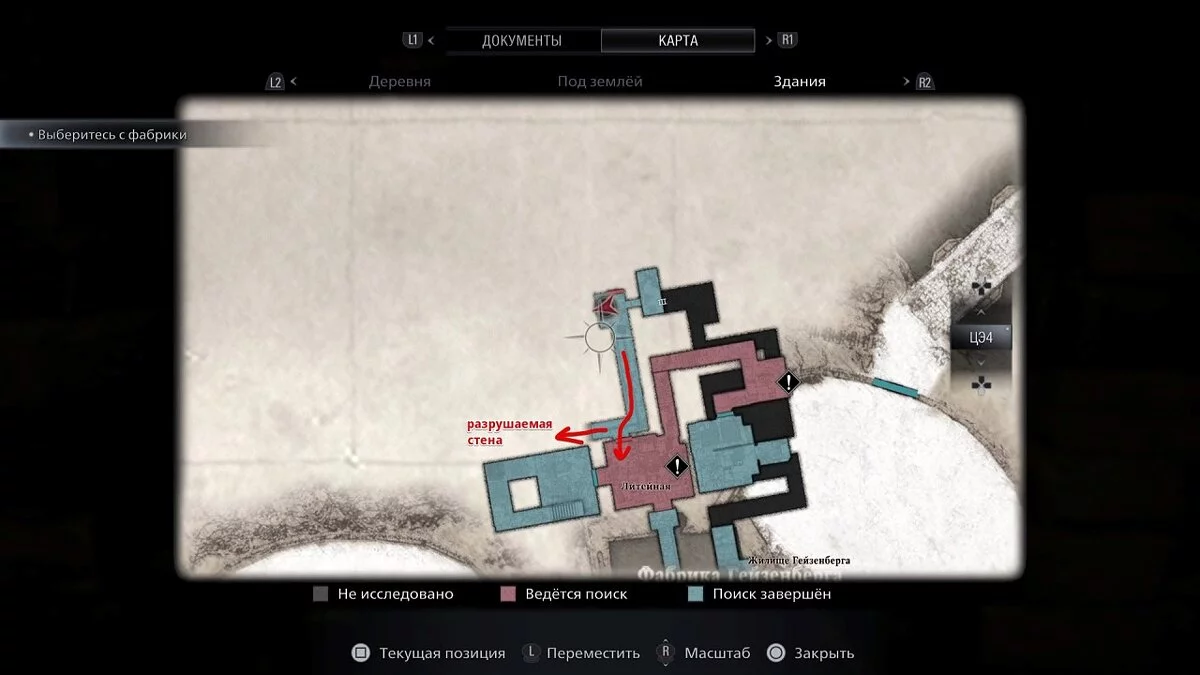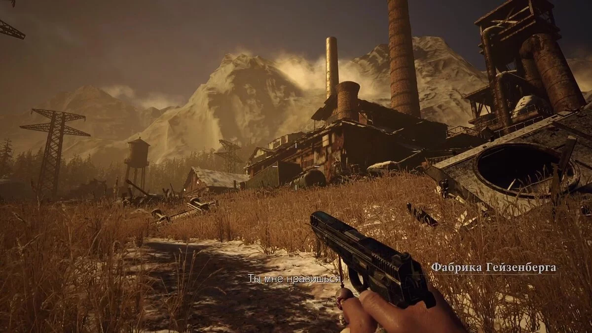 Ее нужно отнести к месту проведения ритуала. Когда вы ее установите, платформа поедет вниз, и откроется проход на фабрику Гейзенберга. Перед входом на фабрику расположилась довольно просторная локация. Можно ее изучить, чтобы пособирать припасы: обломки металла на машине по левую сторону от ворот в ангар и ржавые обломки в машине по правую сторону от ворот. Далее идите вглубь здания. На полках есть порох, в подвале лежит реагент. Далее откройте шторку над рабочим столом. Далее будет катсцена.