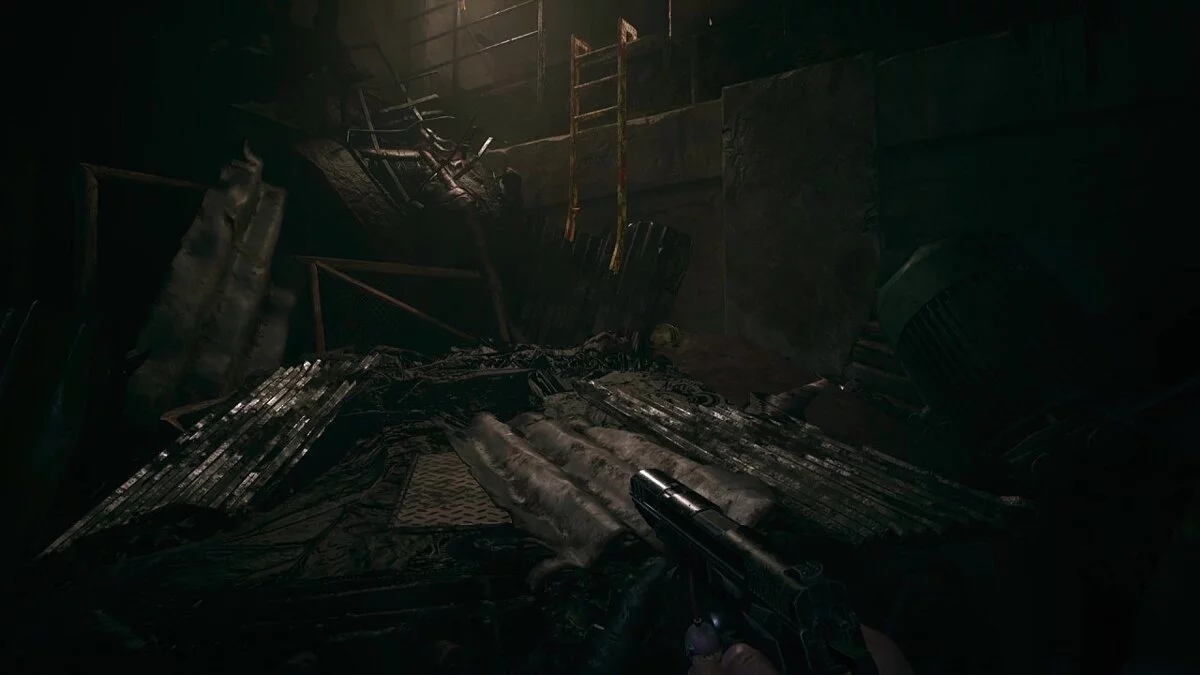Как только вам вернется управление, бегите по единственному пути. В итоге Итан окажется на свалке. Здесь тоже вариантов не много, можно пособирать обломки (х3) и порох. Все они будут по пути, кроме одного. Обратите внимание на низину, куда спускается клешня. Там будет последний из обломков. Далее нужно взобраться наверх по лестнице. Здесь вас ожидает новый вид противников — зомби с имплантами. Заберите монеты из разбитого ящика и далее предстоит путь через вентиляционную шахту.