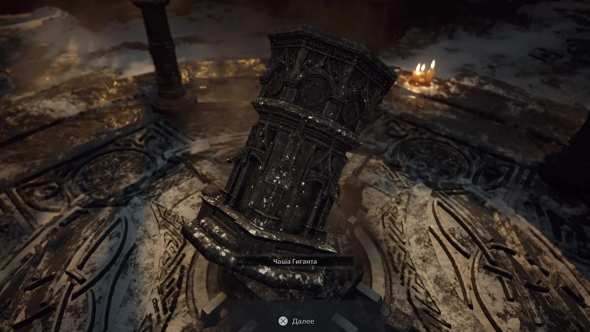 Первым делом загляните в церковь. Вы заметите некоторые изменения. Прочитайте запись на ноутбуке и сохраните игру. Впрочем, вы могли это уже видеть, если заглядывали в церковь ранее. Теперь, когда все 4 колбы у вас, идите к алтарю (рядом с Герцогом). Установите все колбы на места, чтобы получить чашу гиганта.