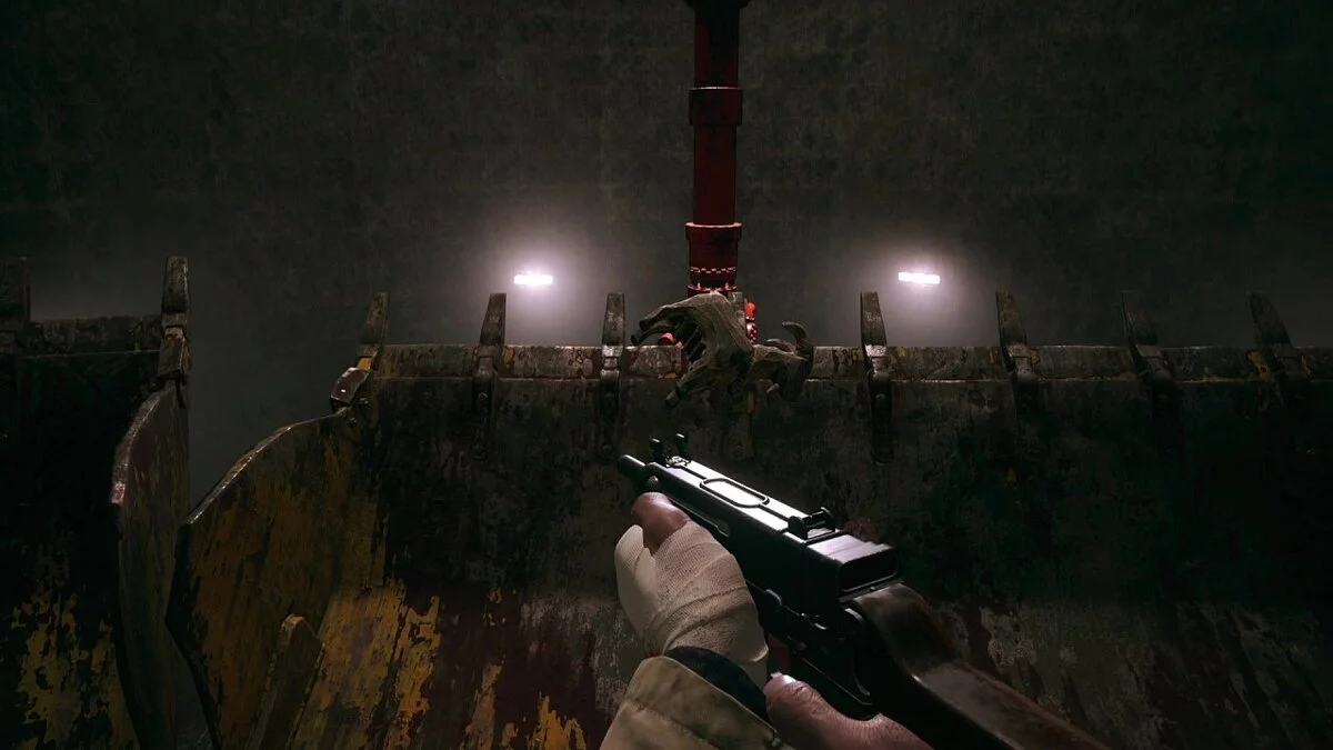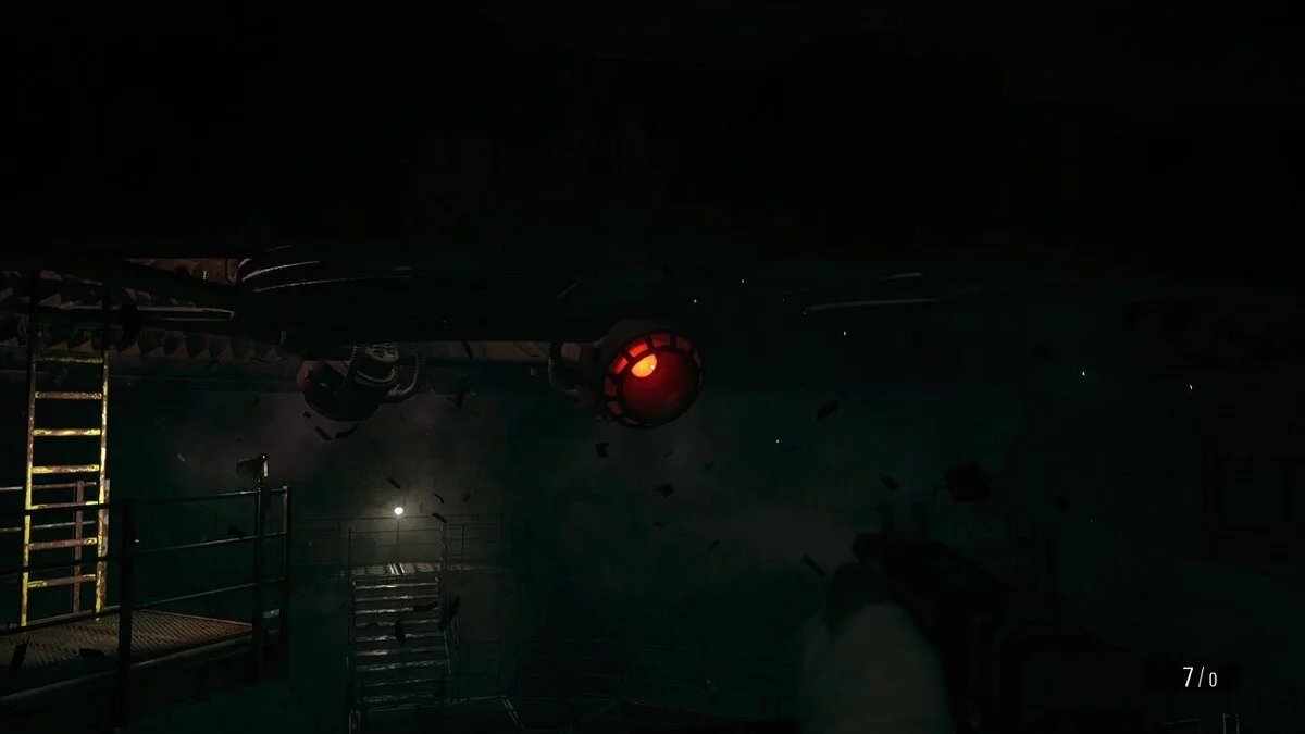В итоге вы снова встретитесь с монстром, у которого двигатель с пропеллером вместо туловища. От него нужно бежать. После непродолжительной погони вы окажетесь в безопасности за запертой дверью. Соберите с верстаков ржавые обломки, обломки металла и порох. Идите далее к грузовому лифту, дерните рычаг и платформа поднимется. Теперь с ее помощью вы сможете перемещаться по фабрике.