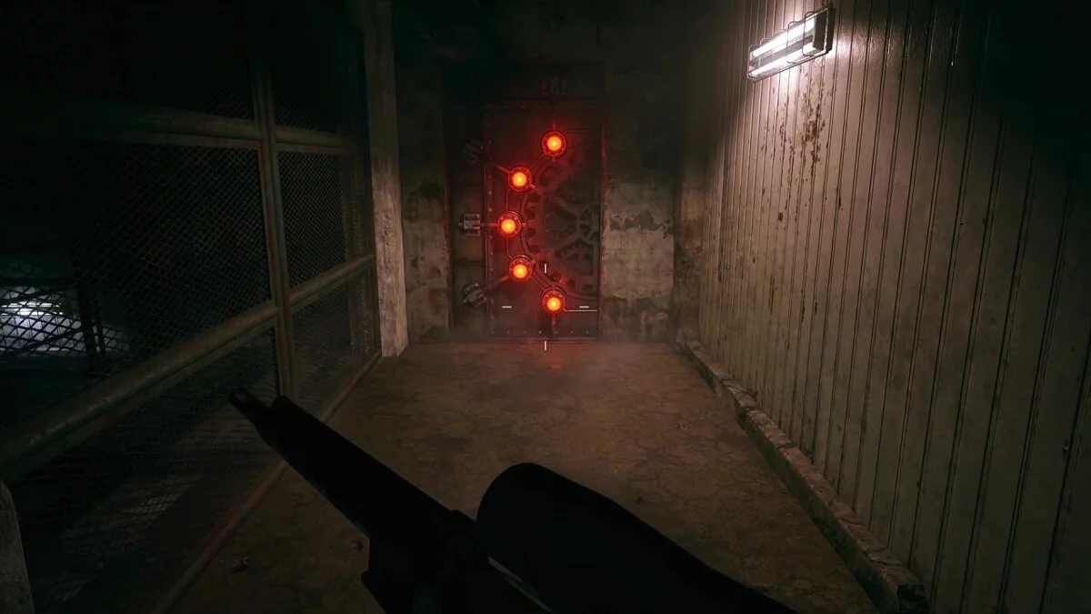 Снова возвращайтесь в комнату с генератором и примените на нем шестерню. Когда появится электричество вы сможете пройти далее. Опустится решетка, которая перекроет путь наверх по лестнице. Но решетка слева от лестницы откроется. Туда и направляйтесь. Разбейте ящик с патронами и идите влево, затем на развилке снова влево. Упретесь в тупик с ящиком. Впереди за решеткой комната, туда пока попасть нельзя. Возвращайтесь обратно и идите теперь ужу вправо по коридору.