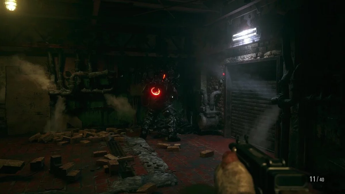 После катсцены Итан снова окажется в самом низу. Уходите через решетку вентиляции и смотрите очередную катсцену. После чего прочитайте документ на ноутбуке и заберите лекарство и патроны, садитесь на мини-танк и едьте в лифт. В битве стреляйте по красным точкам Гейзенберга. И вовремя защищайтесь от его ближних атак. Когда Итан вылетит из танка, прячьтесь за железными щитами. Стреляйте чудовищу в голову. Награда — кристаллический Гейзенберг (70 000).