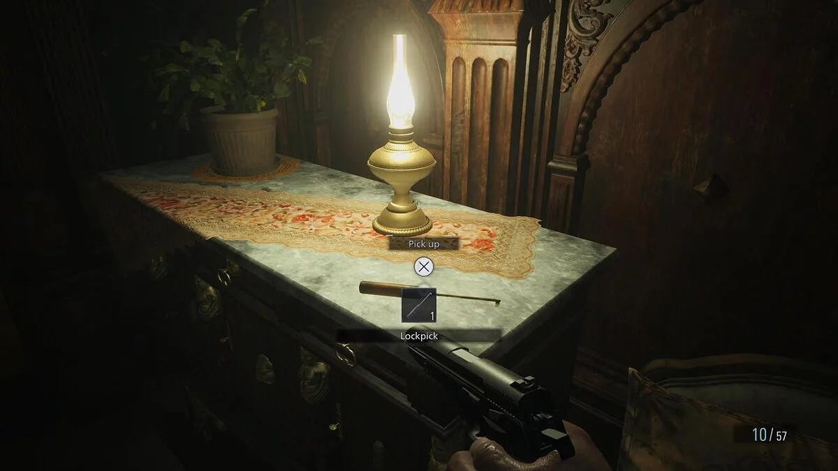 Если вы опытный игрок в Resident Evil, вы уже привыкли постоянно искать и ломать деревянные ящики, их легко обнаружить, потому что они покрыты ярко-желтой лентой. Но теперь вам также захочется разбивать декоративные горшки и стеклянные дверцы шкафов, особенно в замке леди Димитреску. Здесь вы обычно будете собирать такие предметы, как отмычки, боеприпасы и сокровища, но иногда сможете найти небольшую сумку с деньгами.