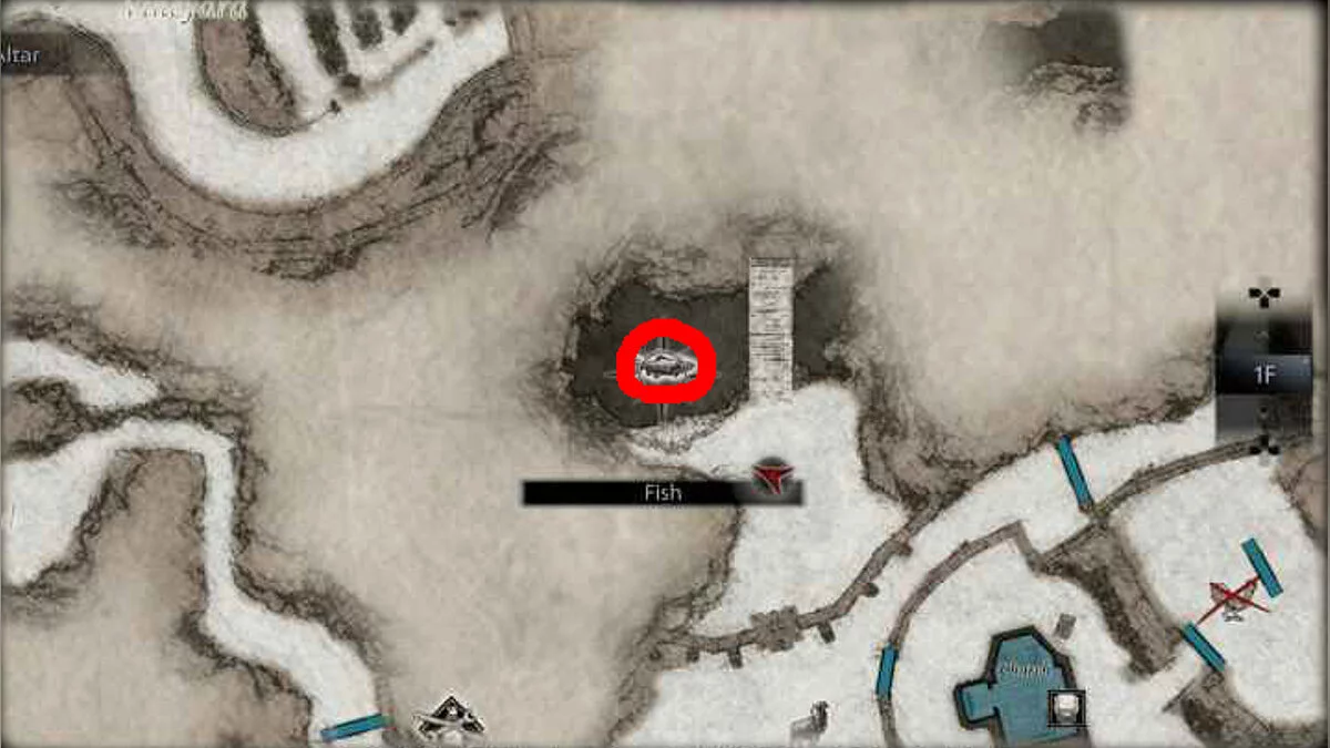 После того, как вы пройдёте замок Димитреску, вам нужно будет вернуться в деревню. По пути вы пройдете через пещеру с небольшим водоёмом и плавающими в нём рыбками.