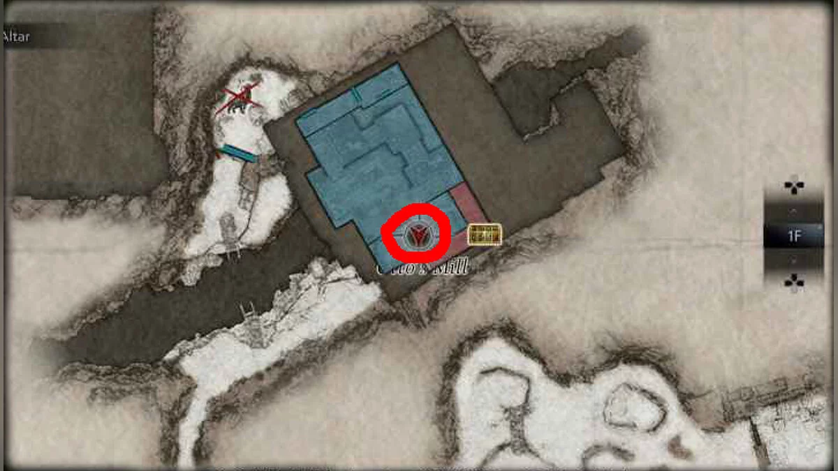 Прежде чем подниматься по лестнице в крепость, поверните налево, чтобы попасть в эту скрытую область на мельнице Отто. Здесь есть враг-минибосс, который вооружен гигантским топором. Пройдя за запертую дверь, вы можете найти эти предметы в комнате перед сундуком с сокровищами.